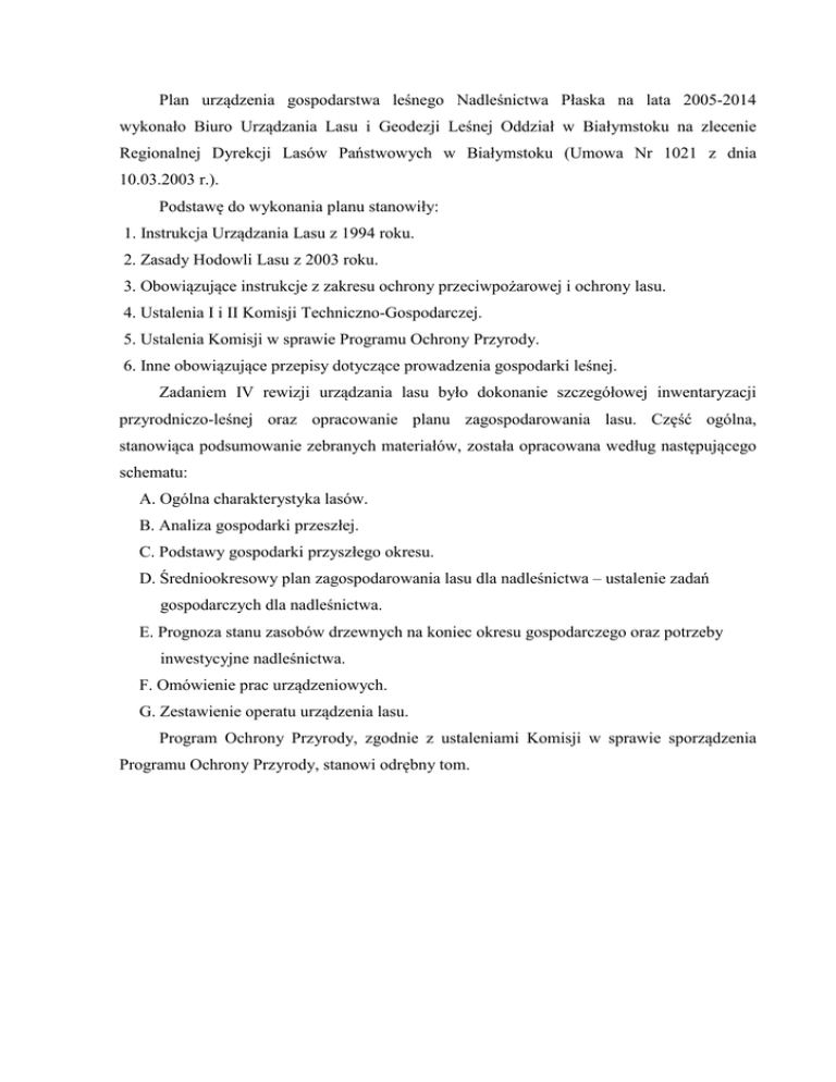 Plan urządzenia gospodarstwa leśnego Nadleśnictwa Płaska na