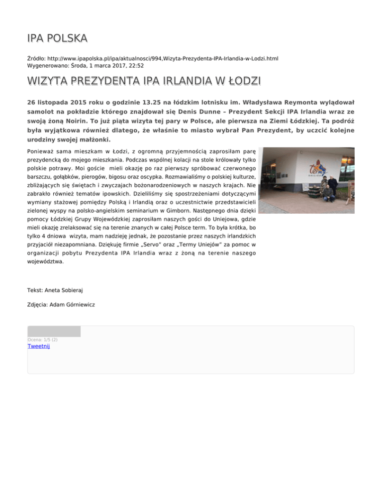 IPA POLSKA WIZYTA PREZYDENTA IPA IRLANDIA W ŁODZI