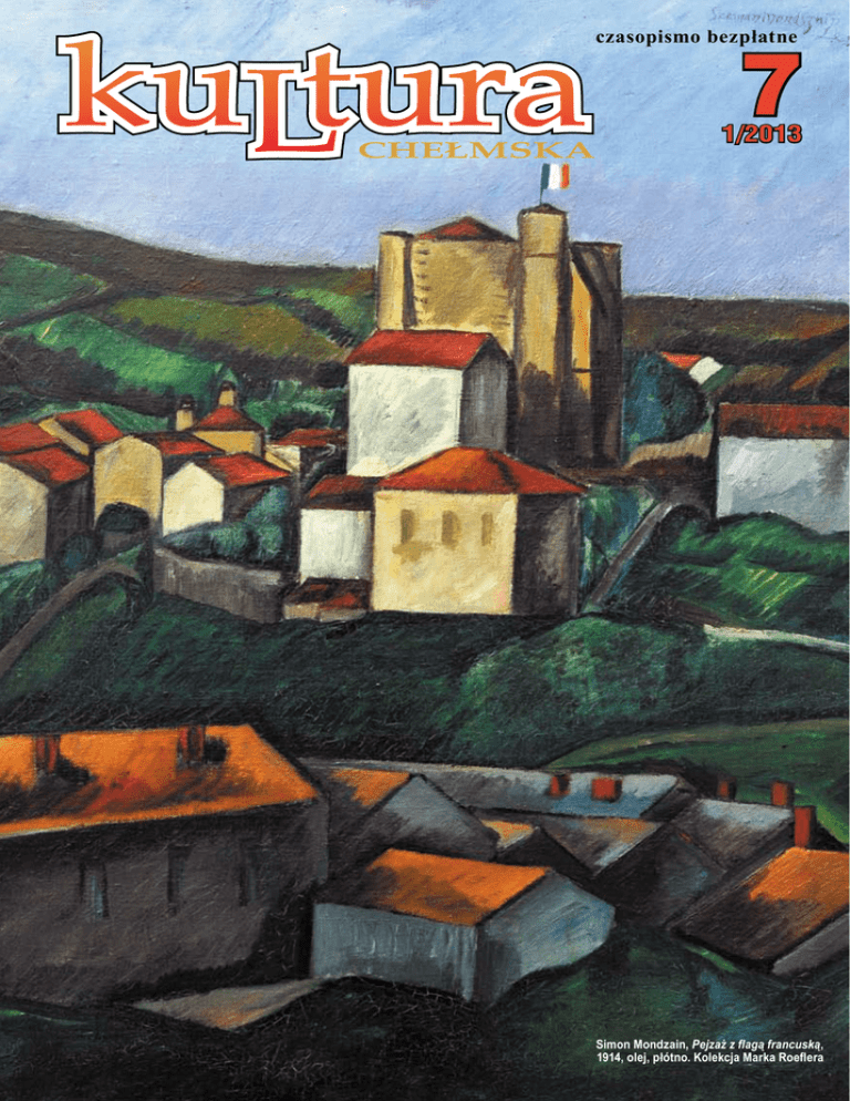 czasopismo bezpłatne 7 1/2013 Simon Mondzain, Pejzaż z flagą francuską, 1914, olej, płótno. Kolekcja Marka Roeflera 2 Rozmaitości Jazz are open! Życzenia Radosnych świąt Wielkanocnych wypełnionych nadzieją budzącej się do życia wiosny i wiarą w sens życia. Pogody w sercu i radości tworzenia, inspiracji i weny, życzliwości decydentów i przychylności czynników oraz spełnienia w sztuce, animacji i kulturze składa redakcja Kultury Chełmskiej W niedzielę 3 lutego polska stolica tańca jazzowego przeniosła się z Kielc do Chełma. Wszystko za sprawą I Karnawałowych Spotkań z Tańcem Jazzowym zorganizowanych przez Młodzieżowy Dom Kultury w Chełmie. Hasłem przewodnim spotkania tancerzy i widzów było zdanie „Bo taniec jest po to by łączył...” Nikt, kto tego dnia przybył na tę imprezę z pewnością nie miał wątpliwości co do słuszności tego motta. Na scenie pojawili się gospodarze - Zespół Tańca Jazzowego Ballo (MDK Chełm), zaproszeni goście - Formacja Tańca Nowoczesnego Foton (MDK Chełm), zespoły Piruet i Zygzak (MDK Krasnystaw) oraz gwiazdy wieczoru - Małgorzata Ziółkowska i Bartłomiej Łącki (Kielecki Teatr Tańca). Widownia wypełnionej po brzegi sali widowiskowej Chełmskiego Domu Kultury mogła podziwiać choreografie w technikach tańca jazzowego, współczesnego i show dance. Dynamiczny, zaskakujący koncert, do którego stworzyła scenariusz i wyreżyserowała go Sabina Englot (na co dzień nauczyciel tańca jazzowego w MDK w Chełmie) był niezapomnianym estetycznym przeżyciem zarówno dla tancerzy jak i dla zgromadzonej publiczności. Klub Mistrzów Polski! Pary taneczne z Klubu Boogie Opus Twist z Młodzieżowego Domu Kultury w Chełmie reprezentowały nasze miasto na Mistrzostwach Polski Boogie Woogie które odbyły się 16 marca 2013 roku w warszawskim Teatrze Rampa. W zaciętych eliminacjach, osiemnaście par z naszego klubu rywalizowało z najlepszymi parami tanecznymi z całej Polski. Taneczne zmagania przyniosły bardzo dobry wynik ponieważ aż osiem par z naszego Klubu zakwalifikowało się do ścisłego finału w trzech kategoriach wiekowych. W gali finałowej, fantastyczne występy naszych tancerzy zaowocowały zdobyciem i obroną tytułu MISTRZA I VICE-MISTRZA POLSKI w kategorii juniorów. To niebywały sukces w dziesięcioletniej historii Klubu Boogie Opus Twist z Młodzieżowego Domu Kultury w Chełmie. Julia Harańczyk i Kacper Stadnicki nie ukrywali łez wzruszenia i radości z obrony wymarzonego tytułu MISTRZA POLSKI W BOOGIE WOOGIE. Na drugim miejscu podium znaleźli się Kultura Chełmska. Czasopismo bezpłatne. Katarzyna Choma i Marcin Mielniczuk, zdobywając tytuł VICE-MISTRZA POLSKI. To nie wszystkie sukcesy na Mistrzostwach Polski, ponieważ w kategorii dzieci para Małgorzata Zalewska i Bartosz Haratym uplasowała się na VII miejscu. W kategorii juniorów para Aleksandra Kozaczuk i Patryk Marcyniuk wytańczyli VII miejsce, Klaudia Sadlej i Wojciech Jańczuk zajęli VI miejsce i para Karolina Stafińska i Kamil Przybylski zajęli V miejsce. W kategorii seniorów Karolina Kryszczuk i Tomasz Kawka zajęli VI miejsce, Natalia Kędzierska i Michał Klimczuk zajęli VII miejsce. Wielkie brawa i gratulacje dla wszystkich tancerzy, trenerów i całego Młodzieżowego Domu Kultury w Chełmie. Naszych bohaterów w szczególności i wszystkie chełmskie pary z największego Klubu Boogie Woogie w Polsce, będzie można zobaczyć już 11 maja na Pucharze Polski w Boogie Woogie w Chełmskim Domu Kultury. Serdecznie zapraszamy. j.gum. Redakcja: Elżbieta Bajkiewicz-Kaliszczuk, Zygmunt Gardziński, Aleksandra Kierska, Anna Małysz, Mariusz Matera, Zofia Wasiuta, Wojciech Zakrzewski (redaktor naczelny) oraz uczestnicy warsztatów dziennikarskich Młodzieżowego Domu Kultury w Chełmie. Foto na okładce: Simon Mondzain, Pejzaż z flagą francuską, 1914, olej, płótno. Kolekcja Marka Roeflera. Skład i łamanie: Jacek Adamczyk. Druk: Wschodnie Centrum Poligraficzne KORZAN, ul. Szkolna 16, Chełm, tel/fax 82 564 00 55. Wydawca: Chełmskie Towarzystwo Naukowe, Redakcja. Młodzieżowy Dom Kultury, ul. Pocztowa 41, 22-100 Chełm, [email protected]. Wydanie dofinansowane ze środków budżetu miasta Chełm. Sponsor strategiczny: PGO Chełm. Redakcja zastrzega sobie prawo do zmian w nadesłanych tekstach, materiałów nie zamówionych nie zwraca. Upojny wieczór! Jedynie tymi słowami można określić to, co zaserwował nam 30 stycznia Adam Bałdych wraz ze swoimi kolegami z zespołu. Najwyższy kunszt muzyczny, zabawa dynamiką, a w konsekwencji gra na emocjach, wszystko okraszone wspaniałymi improwizacjami. Jeśli ktoś nie przepada za jazzem, to ten koncert Adama Bałdycha z pewnością przełamałby wszelką niechęć do tego gatunku muzyki. Z utworu na utwór artysta coraz bardziej absorbował uwagę widowni wciągając ją w swoją grę i zmuszając do interakcji. Niezwykły talent! Przewidujemy Adamowi wielką międzynarodową karierę ciesząc się, że mieliśmy zaszczyt i przyjemność stanąć na Jego drodze artystycznej. Rozmaitości Po prostu „Nowa płyta” - Koncert VOO VOO w Chełmie 18 stycznia 2013 w Klubie Atmosfera przy ul. Kopernika 8 odbył się koncert zespołu VOO VOO, który był częścią trasy promującej najnowszą studyjną płytę zatytułowaną po prostu „Nowa płyta”. Najnowsze dzieło VOO VOO zespołu ukazało się 19 października 2012. Wydawcą albumu jest Agora SA. „Nowa płyta” jest szczególna. Jest bowiem płytą intuicyjnie mądrą rockowo, może nawet gdzieś konceptualną intuicyjnie. Jest płytą, gdzie obok prawdziwej kompetencji artystycznej znać humor, luz i zespołową, niekłamaną radość grania. Płynie z niej też takie właśnie - jasne przesłanie. Ponad ćwierć wieku temu Wojtek Waglewski kończył swoją „Sno-powiązałkę” głośnym okrzykiem-przebudzeniem: „Ja żyję”. I teraz owo „życie” stało się wiodącym tematem jego opowieśc