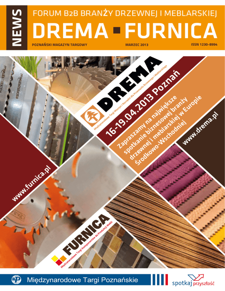 FORUM B2B BRANŻY DRZEWNEJ I MEBLARSKIEJ DREMA FURNICA POZNAŃSKI MAGAZYN TARGOWY ISSN 1230-8994 MARZEC 2013 ń a n 3 1 20 z o P ze ży pie s ęk ran uro i . jw ej b w E a 4 0 na n sow kiej j . 9 y ne ars nie 1 - zam biz ebl od 6 1 ras nie i m sch p a j W Za otk wne osp rze kow d rod Ś M ię d n zy ar o w do e Ta i rg Ko m po ne n w tó do Pr od uk M cji eb li W NUMERZE 3 Słowo Wstępu 4 Polska Fabryka Mebli 5 Polski przemysł drzewny 6 Laureaci Złotych Medali 10 Fabryka Mebli na Żywo 12 Urok Detalu 13 Automitive Design 15 Rzetelnie informujemy 16 10 wskazówek 18 Informacje dla zwiedzających 20 Nowości produktowe Drema 24 Nowości produktowe Furnica 26 Program Wydarzeń 28 Warto zobaczyć 30 Patronaty Medialne FORUM B2B BRANŻY DRZEWNEJ I MEBLARSKIEJ DREMA FURNICA REDAKTOR NACZELNA Katarzyna Supa REDAKTORZY WYDANIA Marta Wiśniewska Dominika Redlicka PROJEKT GRAFICZNY i DTP Brandswork DRUK Artprint ZDJĘCIA Archiwum MTP WYDAWCA Międzynarodowe Targi Poznańskie sp. z o. o. ul. Głogowska 14, 6O-734 Poznań tel.: +48 61 869 2OOO www.mtp.pl Hanna Ochnik-Pawłowska Dyrektor Targów Furnica Andrzej Półrolniczak Dyrektor Targów Drema Zapraszamy Państwa do lektury kolejnego wydania magazynu DREMA FURNICA NEWS. Mamy nadzieję, że jak co roku będzie dla Państwa kompendium wiedzy i przewodnikiem po Międzynarodowych Targach Maszyn i Narzędzi dla Przemysłu Drzewnego i Meblarskiego DREMA oraz Międzynarodowych Targach Komponentów do Produkcji Mebli FURNICA. Na łamach naszego wydawnictwa, opisujemy wydarzenia i wystawy Targów oraz przedstawiamy program, który przygotowaliśmy na tegoroczną edycję. Targi DREMA jako największa w Europie Środkowo-Wschodniej wystawa branży obróbki drewna, po raz kolejny znalazła się na liście światowych imprez, popieranych przez Europejską Federację Producentów Maszyn do Obróbki Drewna EUMABOIS. Zarówno Targi DREMA jak i FURNICA uzyskały również honorowy patronat Ministra Gospodarki. Te wyróżnienia są wyrazem wysokiej rangi wydarzeń organizowanych przez Międzynarodowe Targi Poznańskie, a także potwierdzeniem czołowej pozycji naszych targów wśród dedykowanych branżom obróbki drewna i produkcji mebli. Targi DREMA i FURNICA od wielu lat stanowią okazję do prezentacji aktualnych trendów, technologii i nowości produktowych w najważniejszych sektorach związanych z przemysłem drzewnym i meblarskim. Podczas targów, na blisko 25.000 m kw. powierzchni wystawienniczej, prezentowana będzie kompleksowa oferta w zakresie maszyn i urządzeń dla leśnictwa, sektora drzewnego i meblarskiego, od transportu drewna poprzez jego obróbkę do zaawansowanych technologii w przemyśle meblarskim. Pragniemy zachęcić Państwa do odwiedzenia specjalnych Stref Mistrzów, w których będą mieli Państwo okazję nie tylko zapoznać się z produktami nagrodzonymi Złotym Medalem MTP, ale również zagłosować na najlepsze według Państwa rozwiązanie w konkursie Złoty Medal Wybór Konsumenta. Podczas Targów Drema 2013 zobaczą Państwo kolejną odsłonę Fabryki Mebli na Żywo, która już na stałe wpisała się w krajobraz naszej imprezy. W tym roku, w ramach tego wydarzenia uruchomiona zostanie pełnozakresowa produkcja mebli w postaci dwóch biurek i kontenerów biurowych. Polscy producenci zrzeszeni w Stowarzyszeniu DROMA zaprezentują Polską Fabrykę Mebli. W tym roku w PFM produkowane będą meble kuchenne z drewna sosnowego. Kolejną strefą godna polecenia jest „Urok Detalu”, w tym roku pod tajemniczym hasłem: „W kręgu iluzji…”. Na tej przestrzeni znajdą Państwo produkty, które dzięki rozwiązaniom technologicznym zastosowanym przy ich produkcji, przybiorą zaskakującą postać. Premierową atrakcją targów FURNICA jest wystawa AUTOMOTIVE DESIGN 2013. Jest to przestrzeń przygotowana we współpracy z partnerem, w ramach której zostaną zaprezentowane niezwykłe meble, projektowane w oparciu o design klasycznych samochodów. Jesteśmy przekonani, że również w roku 2013 targi DREMA i FURNICA będą międzynarodowym forum prezentacji najnowszych rozwiązań w sektorze drzewnym i meblarskim. Życzymy przyjemnej lektury i zapraszamy do Poznania! HONOROWY PATRONAT REKOMENDACJA DREMA FURNICA NEWS 3 Polski przemysł drzewny? Czas na zmianę strategii. Weź do ręki garść potencjału: wysoką lesistość, w miarę wysoką podaż drewna, spójrz na mapę Polski, Europy, świata. Zobacz swój biznes z trochę innej perspektywy. Uruchom pokłady możliwości drzemiące w Twoim zespole. Bierne czekanie na koniec kryzysu warto zastąpić nową strategią działania. Ot, taki wiosenny coaching. Lesistość w Polsce kształtuje się na poziomie 30% i jest zbliżona do poziomu w Niemczech, Norwegii, czy też Francji. To właśnie ten współczynnik determinuje w głównej mierze pozycję sektora drzewnego i meblarskiego w Polsce, który od wieków stanowi istotny element polskiej gospodarki. Prognozy dotyczące wzrostu lesistości w Polsce, mówiące o poziomie 33% w 2050 r. każą optymistycznie patrzeć na poziom zaopatrzenia przemysłu drzewnego i meblarskiego w surowiec, oczywiście jeśli wzrost ten będzie proporcjonalny do wzrostu pozyskania drewna a niekoniecznie do wzrostu jego ceny, choć to - obserwując globalne tendencje wydaje się niestety nieuniknione. Więcej drewna... Wzrost pozyskania surowca jest pozytywnym czynnikiem wpływającym na rozwój przemysłu drzewnego, borykającego się z ciągłym jego deficytem. Dla porównania w 2007 r. Lasy Państwowe zaoferowały 30,62 tys m3 drewna okrągłego, w tym roku planowana podaż będzie wyższa o ponad 5 mln m3. To tylko z perspektywy statystyki wydaje się dużo. Prof. Wojciech Lis z Uniwersytetu Przyrodniczego w Poznaniu na łamach czasopisma "Przemysł Drzewny.Reseacrh&Development" wskazuje, że oferta Lasów Państwowych w 2012 r. (34,5 mln m3) "była zbyt skromna jak na fazę rozwoju i potrzeb rynku, a przez swe znaczące zaniżenie wprost wygener