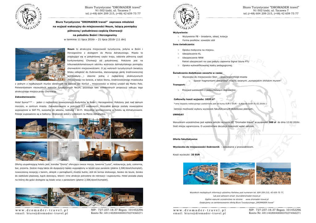 www.dromader-travel.pl Biuro Turystyczne ”DROMADER travel.pl