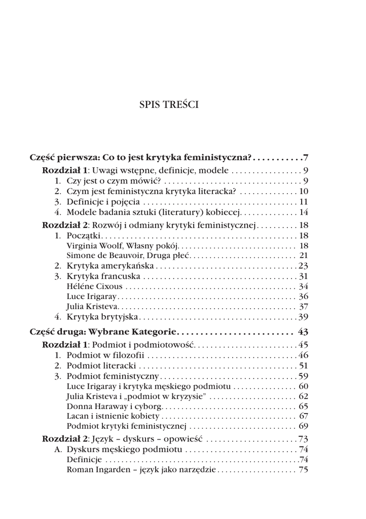 SPIS TREŚCI Część pierwsza: Co to jest krytyka feministyczna?. . . . . . . . . . . 7 Rozdział 1: Uwagi wstępne, definicje, modele. . . . . . . . . . . . . . . . . . 9 1. Czy jest o czym mówić? . . . . . . . . . . . . . . . . . . . . . . . . . . . . . . . . . . 9 2. Czym jest feministyczna krytyka literacka? . . . . . . . . . . . . . . 10 3. Definicje i pojęcia . . . . . . . . . . . . . . . . . . . . . . . . . . . . . . . . . . . . . . 11 4. Modele badania sztuki (literatury) kobiecej. . . . . . . . . . . . . . . 14 Rozdział 2: Rozwój i odmiany krytyki feministycznej. . . . . . . . . . 18 1. Początki. . . . . . . . . . . . . . . . . . . . . . . . . . . . . . . . . . . . . . . . . . . . . . . 18 Virginia Woolf, Własny pokój. . . . . . . . . . . . . . . . . . . . . . . . . . . . . . . 18 Simone de Beauvoir, Druga płeć. . . . . . . . . . . . . . . . . . . . . . . . . . . . 21 2. Krytyka amerykańska. . . . . . . . . . . . . . . . . . . . . . . . . . . . . . . . . . 23 3. Krytyka francuska. . . . . . . . . . . . . . . . . . . . . . . . . . . . . . . . . . . . . . 31 Héléne Cixous . . . . . . . . . . . . . . . . . . . . . . . . . . . . . . . . . . . . . . . . . . . . 34 Luce Irigaray. . . . . . . . . . . . . . . . . . . . . . . . . . . . . . . . . . . . . . . . . . . . . . 36 Julia Kristeva. . . . . . . . . . . . . . . . . . . . . . . . . . . . . . . . . . . . . . . . . . . . . . 37 4. Krytyka brytyjska. . . . . . . . . . . . . . . . . . . . . . . . . . . . . . . . . . . . . . 39 Część druga: Wybrane Kategorie. . . . . . . . . . . . . . . . . . . . . . . . . . 43 Rozdział 1: Podmiot i podmiotowość. . . . . . . . . . . . . . . . . . . . . . . . . 45 1. Podmiot w filozofii . . . . . . . . . . . . . . . . . . . . . . . . . . . . . . . . . . . . 46 2. Podmiot literacki. . . . . . . . . . . . . . . . . . . . . . . . . . . . . . . . . . . . . . . 51 3. Podmiot feministyczny. . . . . . . . . . . . . . . . . . . . . . . . . . . . . . . . . 59 Luce Irigaray i krytyka męskiego podmiotu. . . . . . . . . . . . . . . . . Julia Kristeva i „podmiot w kryzysie” . . . . . . . . . . . . . . . . . . . . . . . Donna Haraway i cyborg. . . . . . . . . . . . . . . . . . . . . . . . . . . . . . . . . . . Lacan i istnienie kobiety. . . . . . . . . . . . . . . . . . . . . . . . . . . . . . . . . . . Podmiot krytyki feministycznej . . . . . . . . . . . . . . . . . . . . . . . . . . . . 60 62 65 67 69 Rozdział 2: Język – dyskurs – opowieść . . . . . . . . . . . . . . . . . . . . . . 73 A. Dyskurs męskiego podmiotu. . . . . . . . . . . . . . . . . . . . . . . . . . . . 74 Definicje . . . . . . . . . . . . . . . . . . . . . . . . . . . . . . . . . . . . . . . . . . . . . . . . . 74 Roman Ingarden – język jako narzędzie. . . . . . . . . . . . . . . . . . . . . 75 Żywa Pagina Język jako medium. . . . . . . . . . . . . . . . . . . . . . . . . . . . . . . . . . . . . . . . Fenomenologia i hermeneutyka: dwie koncepcje języka. . . . . Teoria literatury. . . . . . . . . . . . . . . . . . . . . . . . . . . . . . . . . . . . . . . . . . . Dyskurs . . . . . . . . . . . . . . . . . . . . . . . . . . . . . . . . . . . . . . . . . . . . . . . . . . Michel Foucault. . . . . . . . . . . . . . . . . . . . . . . . . . . . . . . . . . . . . . . . Paul Ricoeur. . . . . . . . . . . . . . . . . . . . . . . . . . . . . . . . . . . . . . . . . . . 78 81 83 86 87 91 B. Głos kobiet. . . . . . . . . . . . . . . . . . . . . . . . . . . . . . . . . . . . . . . . . . . . 95 Psychoanaliza. . . . . . . . . . . . . . . . . . . . . . . . . . . . . . . . . . . . . . . . . . . . . 95 Julia Kristeva: pomiędzy męskim a kobiecym dyskursem. . . . . 97 Luce Irigaray: język kobiecego pragnienia. . . . . . . . . . . . . . . . . . . 99 Héléne Cixous: pisanie ciałem. . . . . . . . . . . . . . . . . . . . . . . . . . . . . 101 Dyskursy feministyczne – kobieca opowieść. . . . . . . . . . . . . . . 104 Rozdział 3: Gender – płeć kulturowa – płeć tekstu. . . . . . . . . . . 106 Rozdział 4: Interpretacja. . . . . . . . . . . . . . . . . . . . . . . . . . . . . . . . . . . 124 Filozofia kultury . . . . . . . . . . . . . . . . . . . . . . . . . . . . . . . . . . . . . . . . . Roman Ingarden – konkretyzacja. . . . . . . . . . . . . . . . . . . . . . . . . . Hermeneutyka – ars interpretandi . . . . . . . . . . . . . . . . . . . . . . . . Interpretacja dzieła. . . . . . . . . . . . . . . . . . . . . . . . . . . . . . . . . . . . . . . Umberto Eco – interpretacja i nadinterpretacja . . . . . . . . . . . . Susan Sontag. . . . . . . . . . . . . . . . . . . . . . . . . . . . . . . . . . . . . . . . . . . . . Krytyka (interpretacja) feministyczna. . . . . . . . . . . . . . . . . . . . . Praktyka interpretacji feministycznej. . . . . . . . . . . . . . . . . . . . . . 124 126 129 132 134 137 139 142