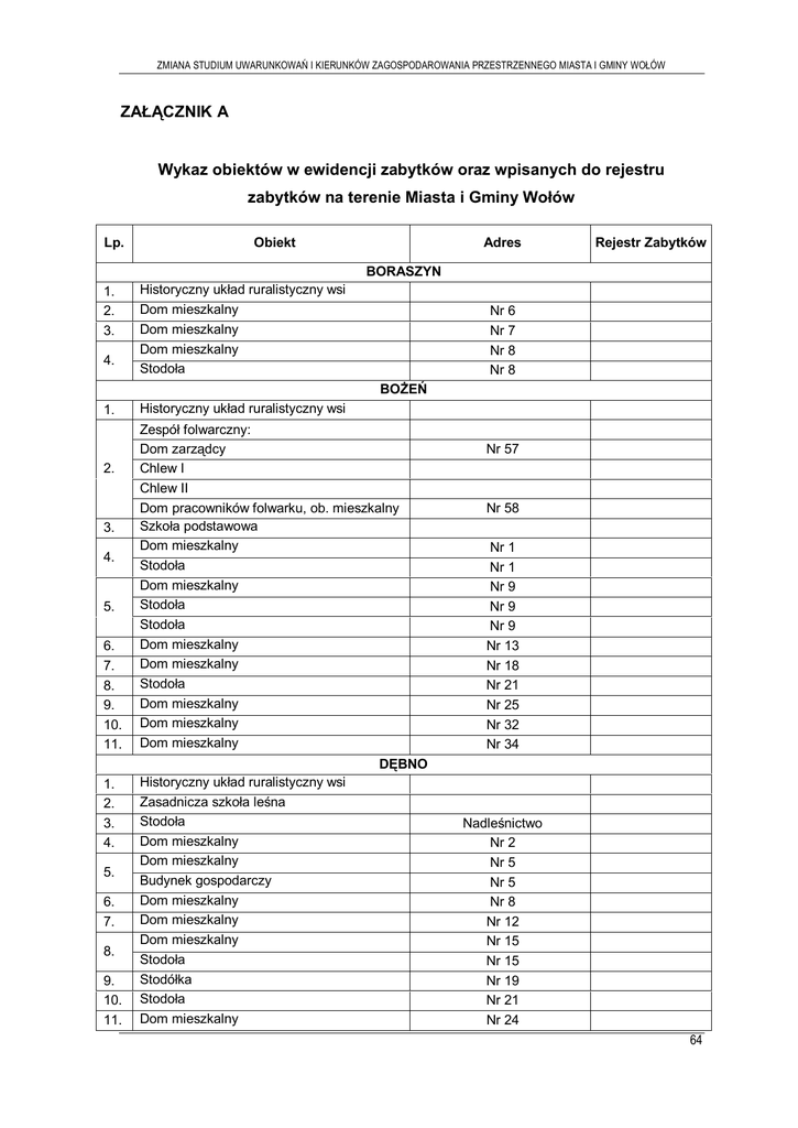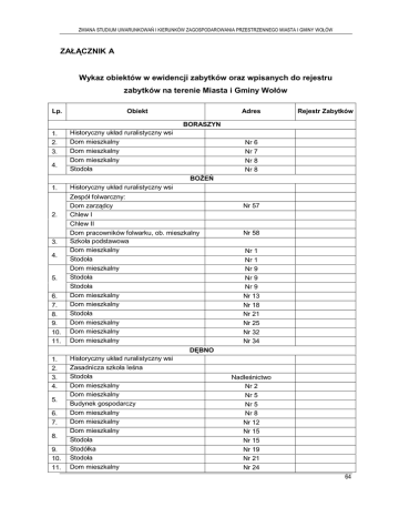 ZAŁĄCZNIK A Wykaz obiektów w ewidencji zabytków oraz