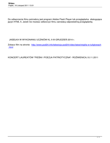 Do odtworzenia filmu potrzebny jest program Adobe Flash Player