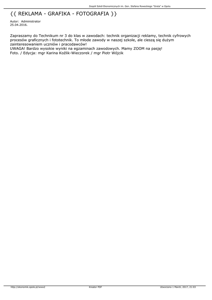reklama - grafika - fotografia - Zespół Szkół Ekonomicznych w Opolu