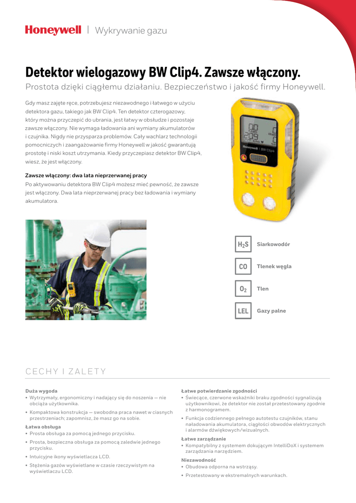Detektor wielogazowy BW Clip4. Zawsze włączony.