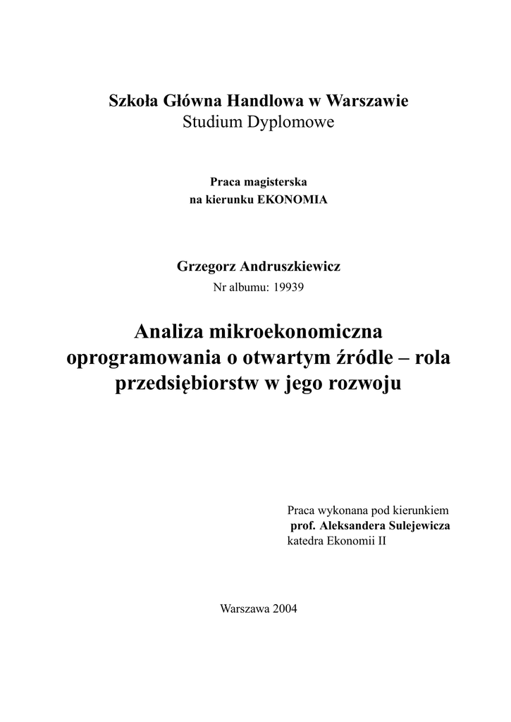 ˛ swoje produkty na rynku komplementarnym) dla wolnego oprogramowania. Udowodniłem
