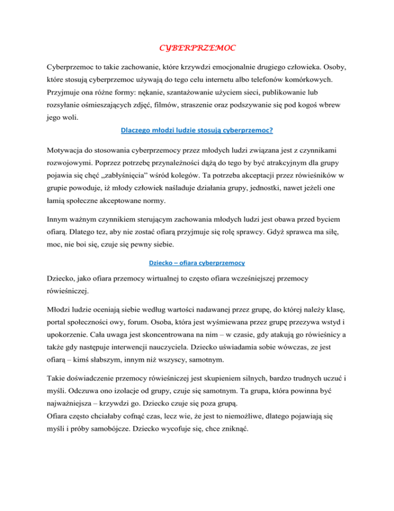 CYBERPRZEMOC CYBERPRZEMOC Cyberprzemoc to takie