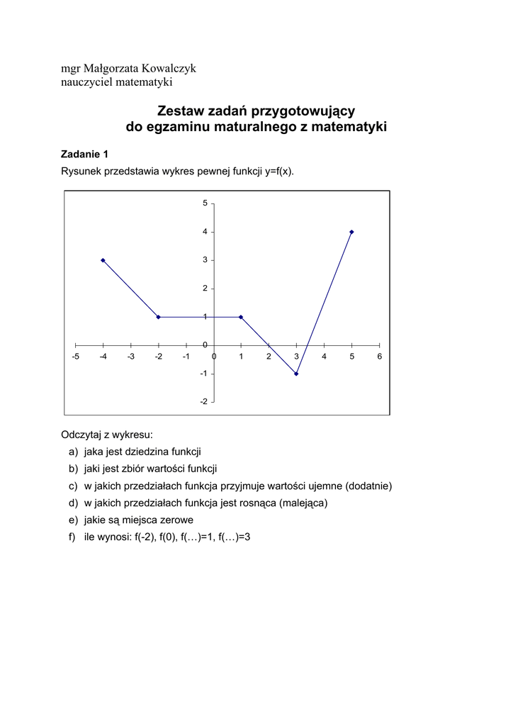 Zestaw zadań przygotowujący do egzaminu maturalnego z matematyki