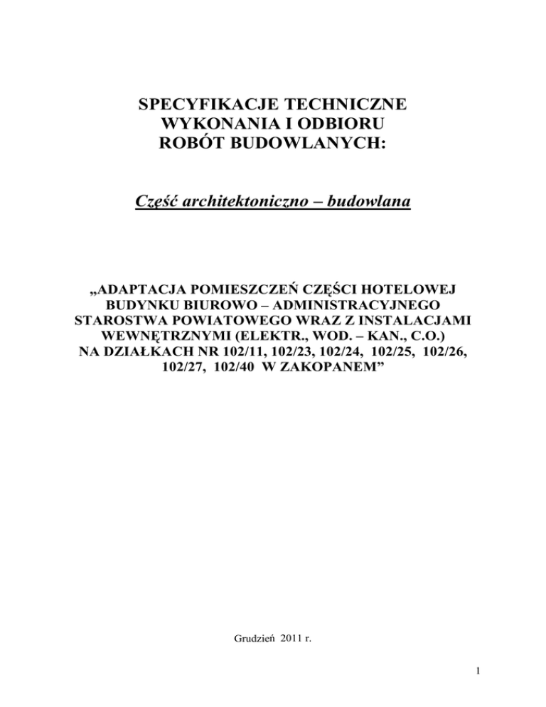 SPECYFIKACJA TECHNICZNA WYKONANIA I ODBIORU ROBÓT
