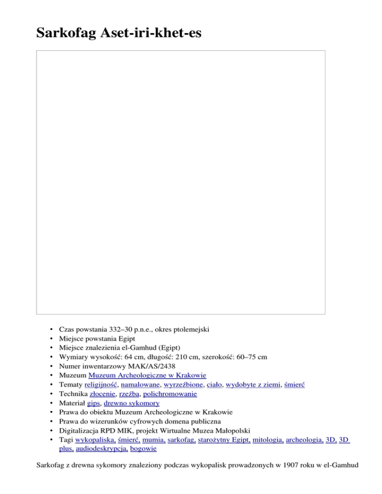 Sarkofag Asetirikhetes - Wirtualne Muzea Małopolski