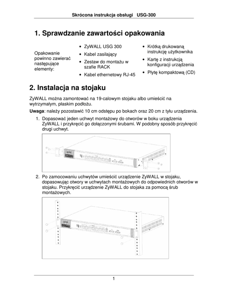 1. Sprawdzanie zawartości opakowania 2. Instalacja na