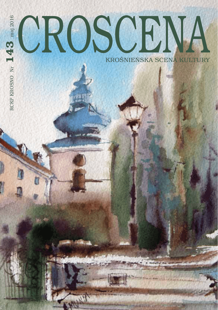 maj 2016 143 RCKP KROSNO Nr CROSCENA KROŚNIEŃSKA SCENA KULTURY 1 2 3 4 5 ADAM ZIEMIANIN Piwonie z Ogrodowej Na Ogrodowej kiedyś świat się zaczął Wtedy nikt nie wiedział jakie będzie lato Pamiętam pierwszą burzę to było na balkonie I rzuciłem ci do stóp piwonie z Ogrodowej Zapłonęły od piwonii piersi twe szalone Musiałaś je wypuścić bo były niespokojne Całowałem w gorączce piwoniowe płatki I odkrywałem zawiłe piwonii zagadki Dziś idę ogrodową i piwonii tyle Lecz gdzie tamte piwonie co kwitły przez chwilę ZESPÓŁ REDAKCYJNY CROSCENY LAUREATEM NAGRODY PREZYDENTA MIASTA KROSNA PIOTRA PRZYTOCKIEGO ZA WYBITNE OSIĄGNIĘCIA W DZIEDZINIE KULTURY W 2012 ROKU. CROSCENA LAUREATEM HONOROWEJ NAGRODY LITERACKIEJ „ZŁOTE PIÓRO” 2010 PRZYZNANEJ PRZEZ ODDZIAŁ ZWIĄZKU LITERATÓW POLSKICH W RZESZOWIE ZA DZIAŁALNOŚĆ NA RZECZ PROMOCJI KULTURY I LITERATURY. Na okładce: akwarela Anny Muni, str. 2 – 1. Konkurs mówienia wierszy Żaczek Przedszkolaczek na scenie 2. Amerykańska gitarzystka Jennifer Batten na scenie RCKP, 3. Za kurtyną… gra zespół Monkey Junk z Kanady, 4. Robert Sikora, autor wystawy fotografii Roztocze – pejzaż subtelny i Dorota Cząstka, dyr. RCKP podczas wernisażu, 5. Wernisaż wystawy Dla Was Martina Kutneho ze Słowacji fot. P. Fiejdasz, P. Matelowski, W. Turek W numerze: 3. Witryna RCKP Wystawy Przedszkolaki mówią wiersze Koncert „Ave Maria” Polecamy 7. Rozmaitości Podkarpacka Edukacja Kulturowa Krośnieńska Noc Muzeów Anna Bryła Ksiądz Dariusz Wilk Przełożonym… Wacław Turek Poezja Jana Belcika Marek Petrykowski Horror – realizacja pracy dyplomowej 12. Kolekcjonerstwo Krośnieńskie pochody trzeciomajowe Zbigniew Więcek 14. Poezja 20. Z kart wspomnień Lenik Wojciech – drukarz krośnieński 21. Przeczytane 22. Podium 26.BWA Łemkowie Marek Burdzy CDS Roszkowski – pasja szkła Karolina Połomska Zbigniew Święciński – pejzaże Stanisław Tabisz 27. Muzeum Podkarpackie Wielki Album Krośnieński Tomasz Pisarek 28. Piwnica PodCieniami Krośnieńskie spotkania z podróżnikami Dorota Piwka 29. KPB Okno otwarte na świat 31. Konkursy Beata Szarek POLSKO - NIEMIECKI ROK JUBILEUSZOWY 2016 W tym roku mija 25. rocznica podpisania polsko-niemieckiego traktatu o dobrym sąsiedztwie i przyjaznej współpracy. Inicjatywy związane z rokiem jubileuszowym mają podkreślić bliskie więzi, jakie wykształciły się w stosunkach polsko-niemieckich na przestrzeni minionych 25 lat. Na pierwszym planie znajdują się projekty o charakterze partycypacyjnym. Zaplanowane są również wydarzenia, które wskażą na związki między instytucjami i ścisłe powiązania między sceną kulturalną w Polsce i w Niemczech. 25 lat dobrego sąsiedztwa pomiędzy Polską i Niemcami to fakt, który istnieje nie tylko na papierze, ale to także rzeczywistość dotycząca ludzi po obu stronach Odry. Imprezy o charakterze ogólnopolskim odbywać się będą głównie w dużych miastach – Warszawie, Krakowie, Gdańsku, Wrocławiu. Do wspólnego świętowania zapraszają Goethe-Institut oraz Ambasada Niemiec. Pełny program wydarzeń jest dostępny na: www.goethe.de/swietujemy. CROSCENA 3 16 - 30 maja Czasem nasycone i działające intensywnością, czy kontrastem. Innym razem delikatne i „mówiące” subtelnymi półtonami. A czasem po prostu czarne i białe, ograniczone do najprostszego, choć tak mocnego zestawienia. Ale zawsze są wyrazem emocji, uczuć i wrażliwości. Mówią czasem głośno albo bardzo delikatnie i subtelnie, charakteryzując sposób patrzenia autorów, którzy w tym przypadku są młodymi, wrażliwymi i pełnymi emocji i indywidualności osobami. Kolory, ich wybór, sposób intensywności, zestawienia, to ich emocje, temperament, wrażliwość na świat - sposób patrzenia i przedstawiania tego co wokół nas. Wystawa jest nie tylko prezentacją wybranych prac fotograficznych uczniów Technikum Organizacji Reklamy z Michalickiego Zespołu Szkół Ponadgimnazjalnych z Miejsca Piastowego. Jest również zaproszeniem autorów do konfrontacji z ich wewnętrznym światem oraz obrazem możliwości jakie daje szkoła poczynając od profesjonalnie wyposażonej pracowni fotograficzno-me- dialnej, a skończywszy na najnowszej generacji sprzęcie do wydruków wielkoformatowych (wszystkie prace zostały wydrukowane w pracowni druku cyfrowego). WITRYNA RCKP w y s t a w y 4 CROSCENA 1 czerwca – 15 lipca detal, forma, minimalizm wystawa fotografii Łukasza Jaracza wernisaż 1 czerwca, 18.00 Łukasz Jaracz, rocznik 88. Absolwent Państwowego Pomaturalnego Studium Kształcenia Animatorów Kultury i Bibliotekarzy w Krośnie. Mieszka i pracuje w Krośnie, od święta poza nim. Od ponad 6 lat współpracuje z KrosnoCity.pl - krośnieńskim portalem informacyjnym, dla którego przygotowuje fotoreportaże z miejskich wydarzeń. W wolnym czasie fotografuje detal oraz architekturę. W niedalekiej przyszłości planuje zająć się również fotografią reklamową, żywności oraz analogową. Koncert „Ave Maria” fot. Danuta Bartosik 3 maja w kościele oo. Franciszkanów w Krośnie już po raz szesnasty odbył się koncert „Ave Maria”. W tym roku miał szczególny wymiar z uwagi na przypadającą 1050 rocznicę chrztu Polski, co zaakcentowano uroczystym wykona- niem hymnu „Gaude Mater Polonia”. Do udziału w tym wydarzeniu zaproszony został Chór Mieszany „Jutrzenka”z parafii św. Józefa w Lubomierzu wraz z kapelą „Mali Muzykanci”. Goście w pięknych strojach regionalnych zaprezento- CROSCENA 5 wali pieśni maryjne w gwarze góralskiej. Dyrygowała Dorota Wcisło. „Echo” pod dyrekcją Marioli Rybczak specjalnie na ten koncert przygotowało nowe utwory: „Matko o twarzy jak polska ziemia czarnej” w opracowaniu Moniki Brewczak oraz „Ave Maria” Petera Wolfa. W obu utworach chórowi akompaniował na or- ganach Maciej Zaforemski. Na koniec w gościnnej świątyni franciszkańskiej zabrzmiało „Alleluja” Le