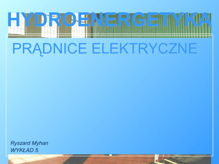 HYDROENERGETYKA PRĄDNICE ELEKTRYCZNE Ryszard Myhan WYKŁAD 5 TYPY PRĄDNICY W małych elektrowniach wodnych są stosowane dwa rodzaje prądnic: prądnice asynchroniczne (indukcyjne) trójfazowe prądu przemiennego; prądnice synchroniczne prądu przemiennego. W zależności od kompozycji turbozespołu, oraz rodzaju i typu turbiny – prądnice mogą mieć wał poziomy, pionowy, a niekiedy też skośny. Wał prądnicy może być sprzężony bezpośrednio z wałem turbiny, bądź też za pośrednictwem przekładni zębatej lub pasowej. Sposób sprzężenia zależy od rodzaju turbiny i prądnicy, ich prędkości obrotowych, mocy i ułożyskowania. TYPY PRĄDNICY Prądnice synchroniczne instalowane w MEW, umożliwiają stabilną pracę elektrowni w sieci wydzielonej – w przypadku przerwania zasilania tej sieci z innych źródeł MEW może stanowić źródło rezerwowego zasilania wydzielonej grupy odbiorców. Prądnice asynchroniczne trójfazowe prądu przemiennego są stosowane w MEW, których zadaniem jest wyłącznie wykorzystywanie niezagospodarowanych cieków wodnych i które nie mają charakteru źródeł rezerwowego zasilania. Energia wytworzona przez prądnicę asynchroniczną jest oddawana do lokalnej sieci elektroenergetycznej zasilanej równolegle z innych źródeł. WIELKOŚĆ I PARAMETRY PRĄDNICY Moc prądnicy w MEW jest zazwyczaj dobierana do maksymalnej mocy turbiny z uwzględnieniem typowego szeregu mocy na podstawie wzoru: Pg = Pt ⋅ η g cos ϕ gdzie: Pg – moc pozorna na zaciska generatora, kVA; Pt – moc na wale turbiny, kW; ηg – sprawność generatora; cosϕ - współczynnik mocy generatora. WIELKOŚĆ I PARAMETRY PRĄDNICY Prędkość obrotową generatora, w przypadku bezpośredniego sprzężenia z turbiną, dobiera się do obrotów turbiny. Małe generatory synchroniczne mają zwykle obroty znamionowe: 500, 600, 750, 1000 i 1500 obr/min. W zależności od typów, spadów i przełyków turbin, prędkości te pozwalają na bezpośrednie sprzężenie prądnicy z turbiną – rozwiązanie takie jest rozwiązaniem optymalnym. Jeżeli znamionowa prędkość obrotów turbiny jest nieco mniejsza niż prędkość znamionowa generatora, to konieczne jest stosowanie przekładni podwyższającej. Przekładni obniżającej obroty nie stosuje się. WIELKOŚĆ I PARAMETRY PRĄDNICY Stosowanie przekładni zmniejsza sprawność turbozespołu, zwiększa jego koszt i poziom hałasu, poza tym stanowi dodatkowy element obniżający pewność pracy turbozespołu. W praktyce są stosowane różne typy przekładni. W przypadku turbozespołu o mniejszej mocy z wałem poziomym zaleca się stosowanie przekładni pasowych. Są one wykonywane z wielowarstwowych pasów płaskich i umożliwiają w jednym stopniu uzyskanie przełożenia nawet 1:6. WIELKOŚĆ I PARAMETRY PRĄDNICY Prądnice o mniejszych mocach dla MEW są konstruowane na napięcia znamionowe 380 V i 400 V, o większych mocach – na napięcia 3,15 kV i 6,3 kV. O wyborze napięcia znamionowego decydują przede wszystkim względy ekonomiczne, a następnie dostępność odpowiedniej aparatury, jej wytrzymałość termiczna i dynamiczna, jak również możliwość selektywnego zabezpieczenia układu. Prądnice asynchroniczne – gdy do tego celu wykorzystywane są typowe silniki asynchroniczne, mają zwykle napięcie znamionowe równe 380 V. Prądnice synchroniczne mniejszych mocy mają zwykle napięcie znamionowe równe 400 V. PRĄDNICE ASYNCHRONICZNE (INDUKCYJNE) Generator asynchroniczny, pobierając prąd magnesujący z sieci, może oddawać moc czynną tylko przy równoległej pracy z siecią zasilaną przez generatory synchroniczne, a zatem nie może pracować samotnie na sieć wydzieloną. W przypadku zaniku napięcia w sieci, także napięcie generatora asynchronicznego zanika. Generator asynchroniczne stosuje się wyłącznie w małych elektrowniach wodnych ze względów natury ekonomicznej, gdyż mają one prostszą konstrukcję, są lżejsze i tańsze, a przede wszystkim nie wymagają regulacji napięcia i synchronizacji. PRĄDNICE ASYNCHRONICZNE Jeżeli silnik indukcyjny przyłączony do sieci jest obracany przez turbinę wodną to silnik stanie się generatorem asynchronicznym i oddaje do sieci moc czynną. 1. moc elektryczna; 2. prąd; 3. moment; 4. cos φ; 5. moc mechaniczna. PRĄDNICE ASYNCHRONICZNE Charakterystyka obciążeniowa 12-biegunowej prądnicy asynchronicznej w funkcji mocy czynnej oddawanej do sieci przy U=380 V, f=50 Hz. 1 – sprawność; 2 – współczynnik mocy; 3 – procentowa ( w stosunku do znamionowej mocy biernej) wartość mocy biernej pobieranej z sieci; 4 – procentowa w odniesieniu do znamionowej mocy oddawanej do sieci wartość mocy na wale prądnicy; 5 – procentowy w stosunku do wartości znamionowej prąd stojana; 6 – prędkość obrotowa prądnicy. PRĄDNICE ASYNCHRONICZNE – MOC CZYNNA Moc znamionowa przy pracy prądnicowej maszyny indukcyjnej jest większa od znamionowej mocy przy pracy silnikowej o wartość strat w systemie pracy silnikowej. Przy założeniu, że cos φ w obu systemach pracy nie ulega zmianie, moc czynna pobierana lub oddawana do sieci energetycznej jest określana wzorem PczG = PS = Ps U I cos φ 3 ⋅ U ⋅ I ⋅ cos ϕ ⋅ 10 −3 [kW] – pobierana moc znamionowa silnika; – napięcie znamionowe sieci; – prąd znamionowy silnika; – znamionowy współczynnik mocy silnika. PRĄDNICE ASYNCHRONICZNE - MOC BIERNA O ile kierunki przepływu mocy czynnych zależą od systemu pracy maszyny indukcyjnej, to kierunki przepływu mocy biernych dla obu systemów nie ulegają zmianie – moc bierna w obu systemach jest dostarczana z zewnątrz. Moc pobieraną z zewnątrz przez maszynę indukcyjną określa wyrażenie Pb = 3 ⋅ U ⋅ I ⋅ sin ϕ ⋅ 10 −3 [kVA] Podłączenie prądnicy asynchronicznej do sieci i generowanie przez nią mocy czynnej wpływa na zmniejszenie strat przepływu i poprawę napięć w sieci, co w warunkach krajowych rekompensuje pobór mo