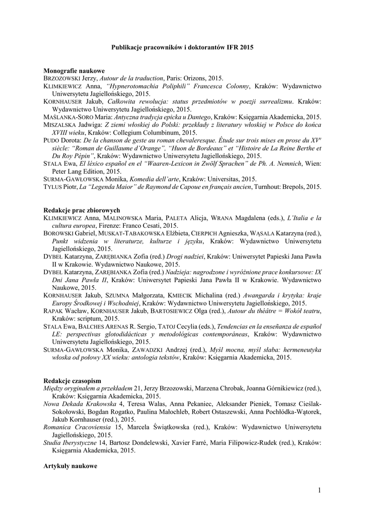 Spis publikacji w roku 2015 - Instytut Filologii Romańskiej
