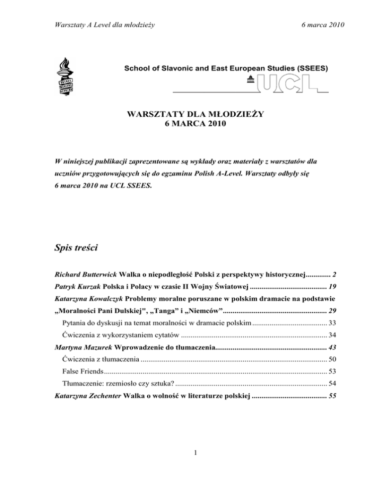uczniów przygotowujących się do egzaminu Polish A-Level. Warsztaty odbyły się