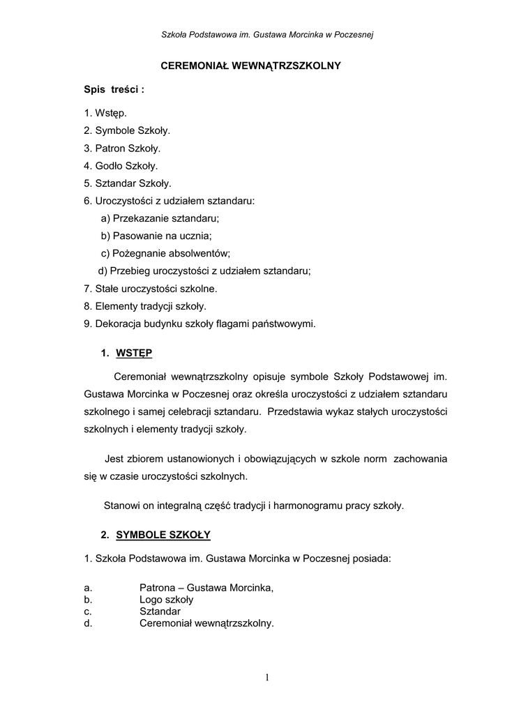 CEREMONIAŁ WEWNĄTRZSZKOLNY SP Poczesna