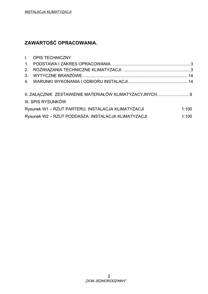 INSTALACJA KLIMATYZACJI ZAWARTOŚĆ OPRACOWANIA. I. 1. 2. 3. 4. OPIS TECHNICZNY PODSTAWA I ZAKRES OPRACOWANIA. .................................................................. 3 ROZWIĄZANIA TECHNICZNE KLIMATYZACJI. ......................................................... 3 WYTYCZNE BRANŻOWE.......................................................................................... 14 WARUNKI WYKONANIA I ODBIORU INSTALACJI. .................................................. 14 II. ZAŁĄCZNIK ZESTAWIENIE MATERIAŁÓW KLIMATYZACYJNYCH""""""..".9 III. SPIS RYSUNKÓW Rysunek W1 – RZUT PARTERU. INSTALACJA KLIMATYZACJI 1:100 Rysunek W2 – RZUT PODDASZA. INSTALACJA KLIMATYZACJI 1:100 2 „DOM JEDNORODZINNY” INSTALACJA KLIMATYZACJI I. OPIS TECHNICZNY projektu instalacji klimatyzacji 1. PODSTAWA I ZAKRES OPRACOWANIA. uzgodnień z biurem architektonicznym podkładów architektoniczno-budowlanych obowiązujących przepisów i norm techniczno budowlanych Przedmiotem opracowania jest projekt instalacji klimatyzacji dla budynku mieszkalnego jednorodzinnego. 2. ROZWIĄZANIA TECHNICZNE INSTALACJI KLIMATZYACJI. 2.1. Instalacja klimatyzacji. Instalację klimatyzacji zaprojektowano w oparciu urządzenia chłodnicze freonowe. Jednostki zewnętrzne umieszczono na elewacji. W pomieszczeniach zastosowano klimatyzatory ścienne. Odprowadzeni skroplin grawitacyjnie do kanalizacji. Sterowanie pracą klimatyzatorów odbywać się będzie za pośrednictwem pilotw, które są dostarczane wraz z urządzeniami wewnętrznymi. Dobór urządzeń nastąpił na podstawie obliczeń cieplnych umieszczonych w projekcie budowlanym. Urządzenia wewnętrzne wyposażone są w filtr powietrza typu przeciwgrzybicznego, materiał o strukturze plastra miodu PP, wymiennik ciepła: wężownica miedziana, lamele typu aluminiowego o powierzchni powłoki hydrofilowej. Urządzenia zewnętrzne umieszczone zostaną na dachu, na konstrukcjach wsporczych. Rozmieszczenie urządzeń wewnętrznych, zewnętrznych oraz trasy instalacji chłodniczych przedstawiono na rysunkach. 2.2. Klimatyzacja gabinetu. Dla Gabinetu zyski ciepła wynoszą 716 W, projektuje się klimatyzator ścienny serii MSZ-FD o mocy chłodniczej 2,5kW który zapewni warunki komfortu dla osób przebywających w pomieszczeniu. Klimatyzator umieszczony będzie na ścianie przy drzwiach wejściowych do pomieszczenia. Jednostka wewnętrzna wraz z jednostką zewnętrzną zostanie połączona ze sobą w systemie multisplit. 3 „DOM JEDNORODZINNY” INSTALACJA KLIMATYZACJI Jednostki wewnętrzne serii MSZ-FD Nowoczesna jednostka ścienna w eleganckiej białej obudowie, o wysokiej efektywności energetycznej, posiadające wiele dodatkowych opcji podnozących poziom komfortu użytkowania. Model wykonany w technologii inverter, o płynnej regulacji wydajności chłodzenia lub grzania. Pozwala to na oszczędności kosztów energii oraz zapewnia wysoki komfort w pomieszczeniu, dzięki minimalizacji wahań temperatury nawiewanego powietrza. Czujnik „I-See” automatycznie porusza się i mierzy temperaturę przy podłodze w obrzasze kąta 150 stopni. Temperatura mierzona jest także jak w standardowym klimatyzatorze ściennym na wlocie powietrza. Układ elektroniki dąży do równomiernego rozkładu temperatur w obszarze poziomym i pionowym. W sytuacji, gdy temperatura w jednej części pomieszczenia podniesie się (np. odsłonięcie żaluzji) urządenie automatycznie, za pomocą elektrycznie sterowanych żaluzji pionowych skieruje nawiew w odpowiednim kierunku. Oprócz komfortu w pomieszczeniu I-See Sensor wpływa także korzystnie na zużycie energii urządzenia. 4 „DOM JEDNORODZINNY” INSTALACJA KLIMATYZACJI Klimatyzatory serii MSZ-FD wyposażone są w najnowocześniejsze technologie oczyszczania powietrza, obejmujące filtr wstępny oraz dwa mechanizmy oczyszczania plazmowego (Plasma Duo), które redukują skalę zanieczyszczeń powietrza i usuwają z niego nieprzyjemne zapachy. Układ generujący plazmę zamontowany jest wewnątrz jednostki. Do wytwarzania ozonu i plazmy wykorzystywane są wyładowania elektryczne. Współpraca między ozonem i plazmą oraz dwoma specjalnymi filtrami stanowi dynamiczną funkcję oczyszczania powietrza. Jednostki MSZ-FD wyposażone są także w funkcję zwalczania pleśni (Mold Fighter), której zadaniem jest ograniczenie rozwoju zarodników pleśni. Ozon wygenerowany w układzie plazmowym działa zabójczo na zarodniki pleśni ograniczając w znacznym stopniu ich rozwój. Jednostki MSZ-FD wchodzić mogą w skład systemów klimatyzacyjnych z wieloma urządzeniami klimatyzacyjnymi wewnętrznymi i jednym wspólnym agregatem zewnętrznym (Multi MXZ). 5 „DOM JEDNORODZINNY” INSTALACJA KLIMATYZACJI 2.3. Klimatyzacja pokoi. Dla Pokoi zyski ciepła wynoszą kolejno 1312W, 1211W, 1429W, 1382W i projektuje się klimatyzatory ścienne serii MSZ-GE o mocy chłodniczej 2,5kW które zapewnię warunki komfortu dla osób przebywających w pomieszczeniach. Klimatyzatory umieszczone będą na ścianach zewnętrznych pomieszczeń. Jednostki wewnętrzne wraz z jednostkami zewnętrznymi połączona ze sobą w systemie multisplit. Jednostki wewnętrzne serii MSZ-GE Standardowe jednostki ścienne charakteryzujące się wysokim poziomem energooszczędności i bardzo cichą pracą. Urządzenie wyposażone w pięć biegów prędkości wentylatora pozwala na elastyczny i komfortowy wybór sposobu nawiewu przez użytkownika (tryb manualny) lub przez automatykę urządzenia (tryb auto). Na najniższych biegach urządzenia serii MSZ-GE pracują z hałasem poniżej progu słyszalności dla człowieka, zapewniają komfortowy sen i wypoczynek. Urządzenia MSZ-GE współpracują z jednostkami zewnętrznymi inverterowymi pozwalającymi na płynną modulacje mocy chłodniczej i poboru energii zgodnie z chwilowym zapotrzebowaniem. Jednostki MSZ-GE współpracują z nowoczesnymi inverterowymi pojedynczymi agregatami typu Split (MUZ-GE) oraz z agregatami 6 „DOM JEDNORODZINN