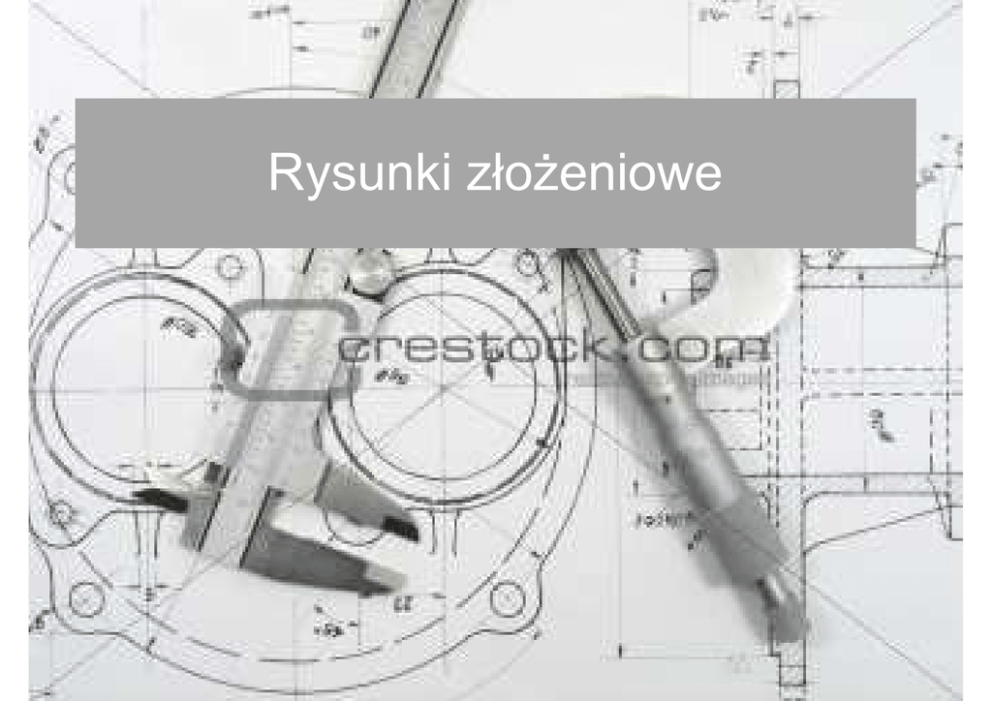 Rysunki złoŜeniowe Rysunek części Rysunek złoŜeniowy Rysunek przedstawiający wzajemne usytuowanie i/lub kształt zespołu na wyŜszym poziomie strukturalnym zestawianych części (PN-ISO 10209-1:1994) Rysunek złoŜeniowy ogólny przedstawia wszystkie zespoły i części całego wyrobu Rysunek podzespołu Rysunek złoŜeniowy na niŜszym poziomie strukturalnym, pokazujący tylko ograniczoną liczbę grup lub części (PN-ISO 10209-1:1994) Rysunki złoŜeniowe części z tworzyw sztucznych z wkładkami metalowymi Wykaz części Kompletna lista pozycji tworzących zespół (lub podzespół), albo poszczególnych części przedstawionych na rysunku (PN-ISO 10209-1:1994) Nr pozycji NAZWA CZĘŚCI L.SZT. MATERIAŁ UWAGI Oznaczenia części Wymagania ogólne Zaleca się, aby oznaczenia części były wykonywane w takiej kolejności, w jakiej poszczególne części występują w zespole i/lub kaŜda pojedyncza część na rysunku. Identyczne części w tym samym zespole powinny mieć to samo oznaczenie. KaŜdy kompletny podzespół, który stanowi cześć składową zasadniczego zespołu, moŜe być oznaczony pojedynczym numerem. EN ISO 6433:1994 Oznaczenia części UWAGA — jeśli na rysunku przedstawiono tylko jedną część, to nie ma konieczności przyporządkowania mu oznaczenia, numer rysunku jest juŜ wystarczającym sposobem identyfikacji tej części. Wszystkie oznaczenia części powinny być zamieszczone w wykazie części wg ISO 7573, a w polu opisu powinny być zamieszczone odpowiednie informacje dotyczące danej części. EN ISO 6433:1994 Oznaczenia części Zasady ogólne W oznaczeniach powinno się uŜywać tylko cyfr arabskich. Jeśli jednak zachodzi taka potrzeba, to moŜna uŜyć takŜe wielkich liter. Rodzaj czcionki, jej wymiary i odstępy — wg ISO 3098-1. EN ISO 6433:1994 Oznaczenia części Wszystkie oznaczenia części na danym rysunku powinny być tego samego typu, a znaki powinny mieć tę samą wysokość. Powinny się one odróŜniać od wszystkich innych opisów znajdujących się na rysunku. EN ISO 6433:1994 Oznaczenia części MoŜna te wymagania spełnić w następujący sposób. a) uŜywając znaków większej wysokości, na przykład podwójnej wysokości w stosunku do liczb wymiarowych lub podobnych opisów; b) obwodząc okręgiem znak kaŜdego opisu części (patrz rysunek 3); w tym przypadku okręgi powinny mieć tę samą średnicę oraz powinny być narysowane ciągłą cienką linią (typ B — wg ISO 128); c) stosując kombinację metod opisanych w a) I b). Oznaczenia części - numerowanie EN ISO 6433:1994 Oznaczenia części Oznaczenia części powinny być umieszczone wyraźnie poza miejscem, na którym przedstawiona jest dana część. KaŜde oznaczenie powinno być połączone z częścią, której dotyczy, za pomocą linii odniesienia, której zakończenie powinno być zgodne z ISO 128. EN ISO 6433:1994 Oznaczenia części Linie odniesienia mogą być pominięte, jeŜeli relacja między oznaczeniem a częścią której dotyczy, jest oczywista. Linie odniesienia nie mogą się przecinać. Powinny być jak najkrótsze i powinny być narysowane pod pewnym kątem (ukośnie) w stosunku do oznaczenia części. W przypadku gdy oznaczenia są odwodzone okręgami, to linie odniesienia powinny być prowadzone promieniowo do tych okręgów. EN ISO 6433:1994 Oznaczenia części W celu zapewnienia przejrzystości oraz czytelności rysunku oznaczenia części powinny być rozmieszczone w kolumnach lub/i w wierszach Oznaczenia części związanych mogą być przedstawione na tej samej linii odniesienia (części 8, 9, 10, 11 przykładu ). EN ISO 6433:1994 Oznaczenia części Oznaczenia części identycznych powinny być zamieszczone tylko raz, aby nie było ryzyka dwuznaczności. NaleŜy uŜywać jednego ze sposob6w kolejności numeracji: — zgodnie z moŜliwą kolejnością montaŜu, — zgodnie z waŜnością części składowych (podzespołów, części głównych, części pomocniczych itp.). — zgodnie z dowolną logiczną kolejnością. EN ISO 6433:1994 Przykład oznaczania części EN ISO 6433:1994 Uproszczenia Rysunek techniczny stosuje przedstawienie dokładne i dwa stopnie uproszczenia Uproszczenia - połączenia gwintowe Uproszczenia - połączenia gwintowe Uproszczenia - połączenia gwintowe Uproszczenia - połączenia gwintowe Uproszczenia - połączenia gwintowe Uproszczenia - połączenia gwintowe Uproszczenia - połączenia gwintowe Uproszczenia - połączenia gwintowe Uproszczenia - nakrętki Uproszczenia - nakrętki Uproszczenia - podkładki Uproszczenia – połączenia skręcane Uproszczenia łoŜyska Uproszczenia – łoŜyska kulkowe Uproszczenia – łoŜyska Uproszczenia - łoŜyska Uproszczenia – łoŜyska kulkowe widoki Oznaczenia rysunków Oznaczanie rysunków Oznaczenia literowo-cyfrowe XXX.0.00.00.A XXX 1 grupa cyfr 2 grupa cyfr 3 grupa cyfr A - oznaczenie literowe wyrobu (podzespołu) - numery kolejny zespołów głównych - numer kolejny podzespołów składowych - numer kolejny części - oznaczenie literowe arkusza rysunku lub wersji Zwyczajowo 0 oznacza rysunek złoŜeniowy Składanie rysunków Składanie rysunków Rysunki schematyczne Schemat elektryczny Schemat mechaniczny Rysunki schematyczne Zasady działania maszyn, urządzeń, instalacji itd. najlepiej przedstawiać w postaci rysunków schematycznych, które są zarówno prostsze i łatwiejsze do wykonania dla konstruktora, jak i przejrzystsze dla uŜytkownika, niŜ rysunki konstrukcyjne. Rysunki schematyczne W zaleŜności od dziedziny techniki i tematu, rozróŜnia się schematy kinematyczne, elektryczne, pneumatyczne, hydrauliczne, energetyczne, technologiczne, automatycznego sterowania, regulacji, kontroli i wiele innych, zaś w zaleŜności od przeznaczenia — schematy strukturalne, funkcjonalne, zasadnicze, montaŜowe (połączeń) i podłączeń (przyłączeń). Rysunki schematyczne Schemat strukturalny jest schematem poglądowym, pokazującym zaleŜ