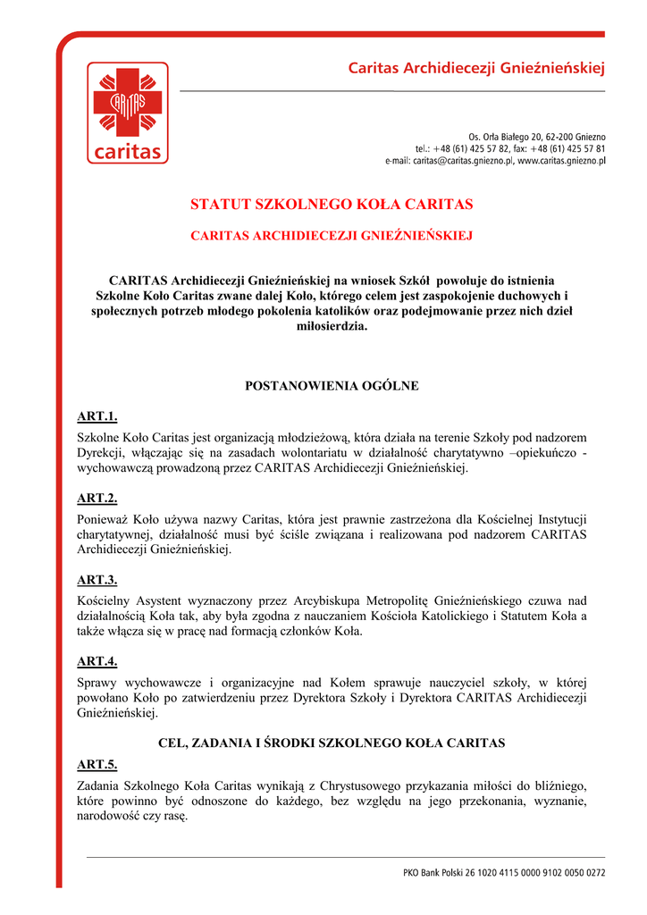 statut szkolnego koła caritas - CARITAS Archidiecezji Gnieźnieńskiej
