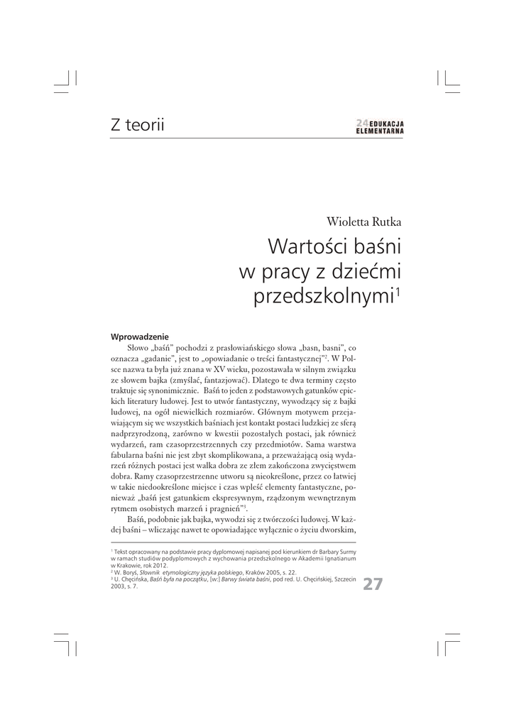 Wartości baśni w pracy z dziećmi przedszkolnymi1
