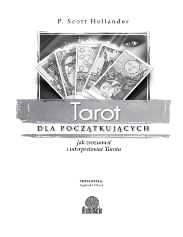 P. S c o t t H o l l a n d e r Tarot DL A POCZĄTKUJĄC YCH Jak zrozumieć i interpretować Tarota PrzełożyłA: Agnieszka Ufland SPIS TREŚCI Wstęp: Rozpocznij swoją przygodę z Tarotem..........................................9 O autorce............................................................................................................ 11 CZĘŚĆ PIERWSZA. Wielkie Arkana......................................................... 13 Atuty: Wprowadzenie do Wielkich Arkanów........................................ 15 Atut pierwszy: Mag............................................................................................... 25 Atut drugi: Kapłanka............................................................................................ 29 Atut trzeci: Cesarzowa......................................................................................... 33 Atut czwarty: Cesarz............................................................................................. 37 Atut piąty: Kapłan................................................................................................. 41 Atut szósty: Kochankowie................................................................................... 45 Atut siódmy: Rydwan........................................................................................... 49 Atut ósmy: Sprawiedliwość.................................................................................. 53 Atut dziewiąty: Eremita....................................................................................... 57 Atut dziesiąty: Koło Fortuny.............................................................................. 61 Atut jedenasty: Moc............................................................................................. 65 Atut dwunasty: Wisielec...................................................................................... 69 Atut trzynasty: Śmierć.......................................................................................... 73 Atut czternasty: Umiarkowanie......................................................................... 77 Atut piętnasty: Diabeł.......................................................................................... 81 Atut szesnasty: Wieża........................................................................................... 87 Atut siedemnasty: Gwiazda................................................................................ 91 Atut osiemnasty: Księżyc.................................................................................... 97 Atut dziewiętnasty: Słońce............................................................................... 103 Atut dwudziesty: Sąd ostateczny..................................................................... 107 Atut dwudziesty pierwszy: Świat.................................................................... 111 Atut zerowy: Głupiec.......................................................................................... 115 Uwagi: Więcej na temat Wielkich Arkanów................................................... 119 CZĘŚĆ DRUGA. Małe Arkana..................................................................123 Małe Arkana: Wprowadzenie do Małych Arkanów.................................... 125 Miecze: Kolor Mieczy......................................................................................... 139 Kielichy: Kolor Kielichów.................................................................................. 169 Monety: Kolor Monet......................................................................................... 169 Buławy: Kolor Buław........................................................................................... 231 CZĘŚĆ TRZECIA: Wróżenie z Tarota.....................................................263 Czytanie Tarota: Jak wróżyć............................................................................. 265 Rozkłady Tarota: Trzy sposoby, aby poznać odpowiedzi........................... 285 Podsumowanie: Twoja przyszłość w Twoich kartach................................. 309 Ta karta reprezentuje umiejętność zrozumienia i interpretacji słowa bożego – zrozumienie Prawa, które jest najwyższym i najlepszym wykorzystaniem intelektualnych umiejętności. 2 atut DRUGI Kapłanka J unona/La Papesse (Kapłanka lub Papieżyca). Odpowiada jej liczba dwa oraz hebrajska litera bet. Symbolizuje Boską mądrość; oświecenie. Zrozumienie (lub potrzebę zrozumienia) praw rządzących światem. Opis Stojąca lub siedząca kobieta. Jeśli stoi, trzyma laskę i wskazuje na coś odległego; jeśli siedzi, w wielu taliach trzyma otwartą książkę – symbol prawa boskiego rządzącego wszechświatem. Niezależnie od stroju ma na sobie koronę w kształcie półksiężyca (lub wariację na ten temat). W większości talii kapłanka stoi lub siedzi pomiędzy dwoma filarami lub kolumnami; zazwyczaj jeden z tych elementów jest czarny, a drugi biały. Kolumny stanowią częsty motyw na kartach Wielkich Arkanów. Filary można zinterpretować jako sym29 bol dobra i zła, światła i ciemności, prawdy i kłamstwa. Jednak na początku nauki najlepiej spojrzeć na nie jak na portal lub drzwi, a postać pomiędzy nimi potraktować jak strażniczkę bramy. Aby przejść przez bramę, nie musisz pokonać ani udobruchać strażniczki. Musisz się nią stać. Kapłanka symbolizuje boską mądrość. Jest jednocześnie Boginią, Matką, Opiekunką i Nauczycielką. W przeciwieństwie do Maga, który wykorzystuje swoje umiejętności do manipulowania światem, Kapłanka żyje, aby chronić i nauczać. Rozumie działanie wszechświata i to zrozumienie, a nie kontrola, jest jej celem i powodem, dla którego istnieje. Istotą tej karty jest mądrość – zrozumienie praw rządzących wszechświatem. Znaczenie Jeśli wybierzesz drogę rozwoju duchowego, Kapłanka będzie następnym etapem. Rozumie działanie 
