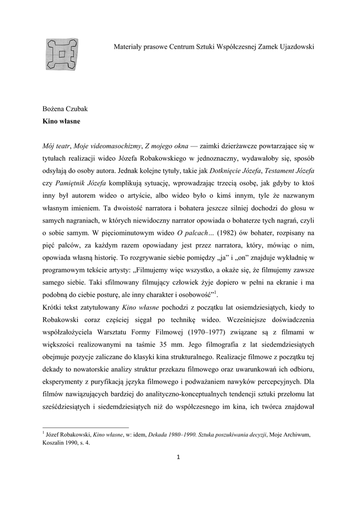 Bożena Czubak Kino własne, PDF - Centrum Sztuki Współczesnej