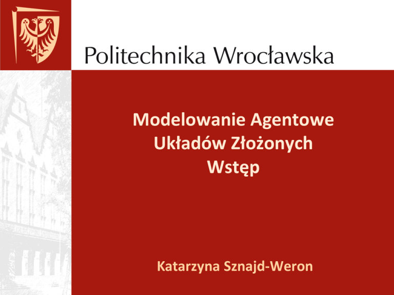 Modelowanie Agentowe Układów Złożonych Wstęp Katarzyna Sznajd-Weron Aperitif (2006) • Physicists pretend not only to know everything, but also to know everything better. • This applies in particular to computational statistical physicists like US. D. Stauffer, doktorat honoris causa Uniwersytet de Liege, 30.03.2006 Po co tu jesteśmy? • • • • Maciek Bieniek – „żeby napisać kilka prac” A po co Ty tu jesteś? Wiem co odpowie kilka osób … Jakie mamy możliwości: – Praca naukowa zakończona publikacją (grupy 2-4) – Wizualizacja modelu (w NetLogo) – Jakieś inne pomysły? Co to jest model agentowy? • Model mikroskopowy • Bottom – up • Agenci (jednostki) – – – – Ludzie, zwierzęta, rośliny, cząstki, … Organizacje, społeczności, populacje, gatunki, … Jednego typu lub więcej (np. ludzie i organizacje) Każdy agent ma pewne cechy • Oddziaływania • Środowisko (przestrzeń) Kiedy się pojawiły? • „Do 2002 ludzie nie zajmowali się na poważnie ABM” – Dlaczego? A. Borshchev, AnyLogic • Od 19 lat w naukach społecznych wg. F. Squazzoni, History of Economic Ideas, xviii/2010/2 • Wg. Web of Science 1991 1993 Źródło: M. Niazi, A. Hussain, Agent-based computing from multi-agent systems to agent-based models: a visual survey, Scientometrics (2011) 89:479–499 Co to jest układ złożony? • • • • Składa się z wielu elementów oddziałujących ze sobą „Nieliniowe oddziaływanie”: 2 + 2 ≠ 4 Całość to coś więcej niż suma jego części Typowe: – – – – – Emergencja Samoorganizacja Brak równowagi Sprzężenia zwrotne Prawa potęgowe Budowla termitów Płatki śniegu More Is Different • 1977 nagroda Nobla z fizyki prace nad nieuporządkowanymi układami magnetycznymi • P. W. Anderson, More Is Different, Science, New Series 177 (Aug. 4, 1972), pp. 393-396 • Przejścia fazowe – więcej to coś innego!!! – Teoria wielkiego wybuchu (cząstki elementarne, kosmologia) – Zastosowania interdyscyplinarne: ewolucja biologiczna, genetyka, lingwistyka, epidemiologia, … Przykład: Segregacja rasowa Przykład: Model Schellinga (1971) • Agenci mogą być tylko dwóch typów i początkowo rozmieszczeni są losowo na sieci • Agent jest nieszczęśliwy jeżeli ma w otoczeniu zbyt wielu obcych (>T) • W każdym kroku symulacji jeden nieszczęśliwy, losowo wybrany agent jest przesuwany do losowo wybranej wolnej komórki w sąsiedztwie Schelling, T.C. Dynamic Models of Segregation, Journal of Math. Sociology 1: 143-186 (1971) Przykład: Model Schellinga (1971) Czego się spodziewacie? Zajrzyjcie na https://ccl.northwestern.edu/netlogo/ Models Library: Social Science: Segregation Jaka nauka płynie z tego modelu? • Model segregacji ze względu na pewną cechę (rasa, płeć, wiek, styl życia, pozycja, zamożność) • Nikt nie preferuje ścisłej segregacji • Ostra segregacja mimo „łagodnych” preferencji • Mikro motywy i makro zachowanie Przejście pomiędzy mikro a makro © Marcin Weron Temperatura Curie – ciągłe przejście fazowe magnes ferromagnetyk © Katarzyna Sznajd-Weron • • • • Przejście fazowe Ferromagnetyk 𝑇 ≤ 𝑇𝑐 Paramagnetyk 𝑇 > 𝑇𝑐 Jak to zrozumieć? Model Isinga (Lenza-Isinga?) • • • • • 1925 rozprawa doktorska Ernsta Isinga Brak przejścia fazowego w 1D Jedyna praca Isinga Przejście fazowe w 2D (lata czterdzieste) Skala mikro tłumaczy zachowania makro 𝐿 𝐻 = −𝐽 𝑆𝑖 𝑆𝑗 <𝑖,𝑗> 1𝐷 𝐿 𝐻 = −𝐽 𝑆𝑖 𝑆𝑖+1 𝑖=1 Skąd taki Hamiltonian? Każdy układ dąży do minimalizacji energii LÓD WODA LÓD WODA Lód i woda w równowadze LÓD WODA Przechłodzona woda Skąd taki Hamiltonian? 𝐿 𝐻 = −𝐽 𝑆𝑖 𝑆𝑖+1 Każdy układ dąży do minimalizacji energii 𝑖=1 𝐿 𝐻 = −𝐽 𝑆𝑖 𝑆𝑖+1 = −𝐽 3 ∙ 1 + 4 ∙ (−1) 𝑖=1 𝐿 𝐻 = −𝐽 𝐿 𝑆𝑖 𝑆𝑖+1 = −𝐽 𝑖=1 1 = −𝐽𝑁 𝑖=1 Oddziaływania pomiędzy cząstkami Ferromagnetyk (konformizm) Antyferromagnetyk (antykonformizm) • Wpływ (siła oddziaływania) wzrasta wraz – Ze zgodnością grupy – Z rozmiarem grupy • Wysoka temperatura –„nerwowo” © Piotr Nyczka Czego się spodziewacie? Czego się spodziewacie? Zajrzyjcie na https://ccl.northwestern.edu/netlogo/ Models Library: Chemistry & Physics: Ising NetLogo (środowisko do ABM) Prof. Uri Wilensky Northwestern's Center for Connected Learning and Computer-Based Modeling (CCL) Ewolucja układu w czasie (ferromagnetyk) niska temperatura • Oddziaływanie – porządkuje • Temperatura – losowe zmiany 1 𝑚 =< 𝑆𝑖 > = 𝑁 – W niskich temperaturach porządek – W wysokich temperaturach nieporządek 𝑁 𝑆𝑖 𝑖=1 Dalsze losy modelu Isinga • Przejście fazowe w 2D bez pola – Onsager, lata czterdzieste • Symulacje Komputerowe – model Isinga w 3D i 2D z polem • Wykorzystanie poza fizyką Symulacja Monte Carlo Modelu Isinga • • • • • • Przygotuj stan początkowy układu Pozwól mu ewoluować Poczekaj aż ustali się magnetyzacja Zanotuj wartość 𝑚 𝑚 =< 𝑆𝑖 > = Powtarzaj to „dużo” razy Policz średnią magnetyzację • Jaka to średnia? 1 𝑁 𝑁 𝑆𝑖 𝑖=1 Średnia po czasie Średnia po zespole Średnia po czasie i średnia po zespole Układ ergodyczny to średnia po zespole = średnia po czasie Algorytm Metropolisa – 1MCS = N losowań • Wylosuj jeden spin 𝑆𝑖 • Oblicz energię E = 𝐸(𝑆𝑖 ) = −𝑆𝑖 𝐽 • Oblicz energię E ′ = 𝐸(−𝑆𝑖 ) = 𝑆𝑖 𝐽 𝑗∈𝑛𝑛 𝑆𝑗 𝑗∈𝑛𝑛 𝑆𝑗 • Oblicz zmianę energii ΔE = E′ − E • Jeżeli ΔE ≤ 0 to 𝑆𝑖 → −𝑆𝑖 • Jeżeli ΔE > 0 to wylosuj 𝑟 z przedziału [0,1] i akceptuj nową konfigurację jeżeli: Δ𝐸 𝑟 < 𝑝 = 𝑒𝑥𝑝 − , 𝑘𝐵 = 𝐽 = 1 𝑘𝐵 𝑇 Przejście fazowe w modelu Isinga Po co model w fizyce? ? nieznane zj