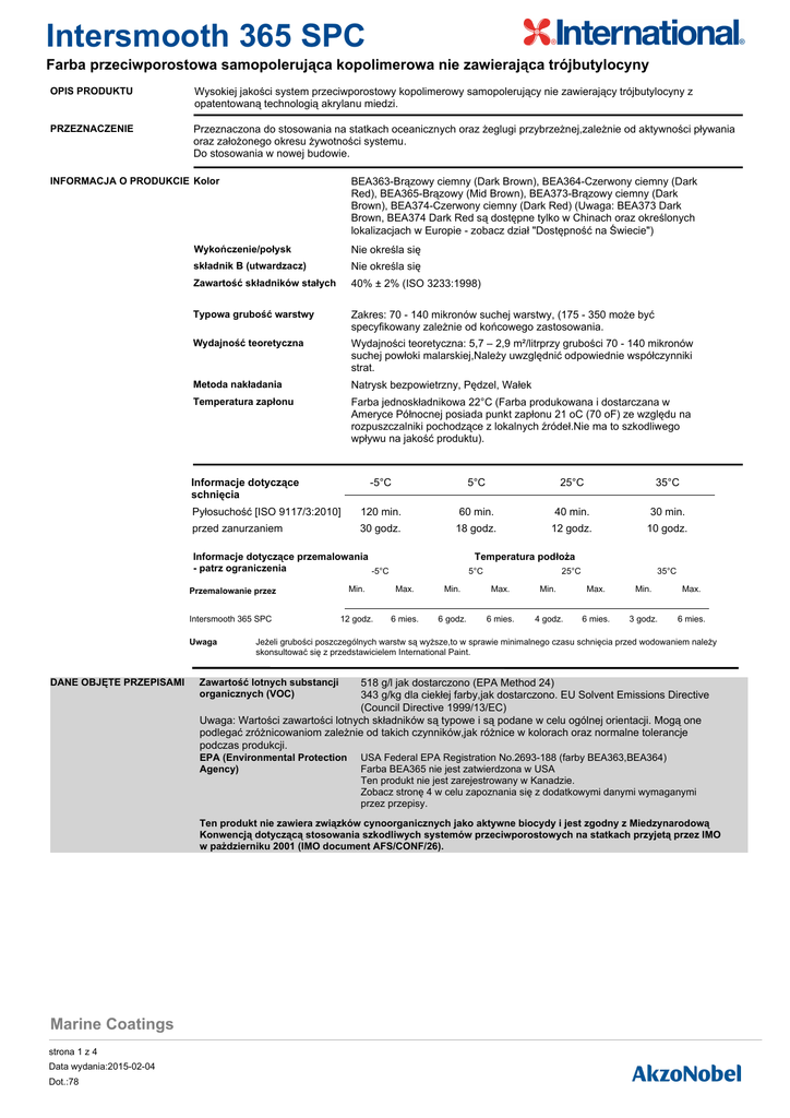 Techniczne karty katalogowe są dostępne na naszych stronach internetowych www.international-marine.com lub www.international-pc.com i powinny być