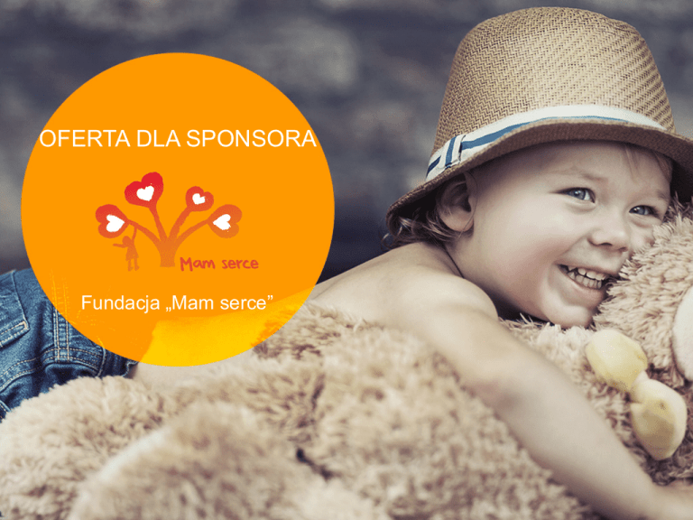 OFERTA DLA SPONSORA Fundacja „Mam serce” 2 O NAS KIM JESTEŚMY? CO ROBIMY? CO OFERUJEMY? Realizujemy kampanie charytatywne na rzecz podopiecznych naszej Fundacji z apelem o pilną pomoc. Miesięcznie docieramy do kilku milionów użytkowników Internetu, którzy przekazują pieniądze na leczenie danego dziecka, a potem śledzą jego losy na Facebooku, nk.pl, Twitterze oraz na naszej stronie www.mam-serce.org. Jesteśmy organizacją non-profit, która do pozyskiwania funduszy wykorzystuje e-mail, display, Internet i portale społecznościowe. W ciągu 5 lat działalności zebraliśmy ponad 9 milionów PLN, które w 100% przekazaliśmy na leczenie i rehabilitację 210 dzieci. Wszystkie darowizny pochodziły od osób prywatnych, nie z 1%. Możliwość dotarcia tańszym kosztem do kilku tysięcy potencjalnych klientów w krótkim czasie z wizerunkiem firmy odpowiedzialnej społecznie (pozytywny PR). Budowanie wizerunku sponsora realną pomocą. Możliwość odliczenia darowizny od podstawy opodatkowania zmniejszając wysokość podatku CIT (10%) i PIT (6 %). 3 JAK POMAGAMY? Wysyłamy raz w miesiącu kampanię e-mailingową do bazy ponad 1,6 mln użytkowników firmy ClickQuickNow Sp. z o.o z apelem o pomoc podopiecznemu. Przykład kreacji e-mail wysłanej do bazy 1,6 mln osób Przekierowanie na stronę Internetową podopiecznego OFERTA DLA SPONSORA Zamieszczamy logo Państwa firmy w kreacji e-mailingowej oraz na stronie podopiecznego i na Facebooku z informacją o wsparciu przez Państwa akcji jako Sponsor. Logo Sponsora w kreacji Podziękowania na Facebooku 4 5 ZAŁOŻENIA KAMPANII 1. Wysyłamy e-mailing z apelem o pomoc wybranemu przez Państwa podopiecznemu, któremu mogą Państwo pomóc przekazując darowiznę uzależnioną od wyników akcji. Każda złotówka wpłacona przez darczyńców jest podwajana przez Sponsora 2. Udostępniamy statystyki ze zrealizowanej wysyłki e-mailingowej: Symbol Wysłano Otwartych % Wpłaty % Zebrana kwota Walka o oko 1 600 000 8,5 0,08 80 000 PLN Operacja serca 1 600 000 4,12 0,08 55 000 PLN 3. Sporządzamy szczegółowy raport z przebiegu realizacji celu, informujemy o dalszych losach podopiecznego. KORZYŚCI ZE WSPÓŁPRACY SKUTECZNOŚĆ DOTARCIA Dotarcie do 1,6 mln użytkowników Internetu z OR-em kilkukrotnie wyższym niż w kampaniach komercyjnych ZAUFANIE DO MARKI Wizerunek firmy odpowiedzialnej społecznie dzięki zaangażowaniu w działalność charytatywną 6 WIARYGODNOŚĆ PARTNERA Dzięki transparentności finansowej fundacji oraz poparciu firm i organizacji NIESIENIE REALNEJ POMOCY Dzięki zadeklarowanej pomocy finansowej (złotówka za każdą wpłaconą złotówkę) śledzenie na żywo wyników akcji 7 FUNDACJA W LICZBACH Kwota przekazana na rehabilitację i leczenie chorych dzieci: 9 000 000 PLN Liczba darczyńców indywidualnych i firm: 300 000 Dzieci, które otrzymały pomoc: 210 Sprzęt rehabilitacyjny: 84 Sfinansowane operacje zagraniczne: 83 Sfinansowane turnusy rehabilitacyjne: 77 WSPIERAJĄ NAS DOŁĄCZ I TY! 8