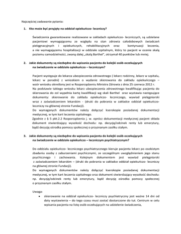 Najczęściej zadawanie pytania: 1. Kto może być przyjęty na oddział