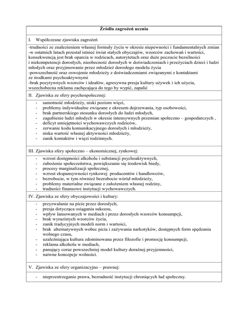 Źródła zagrożeń ucznia - Zespół Szkół w Krzymowie
