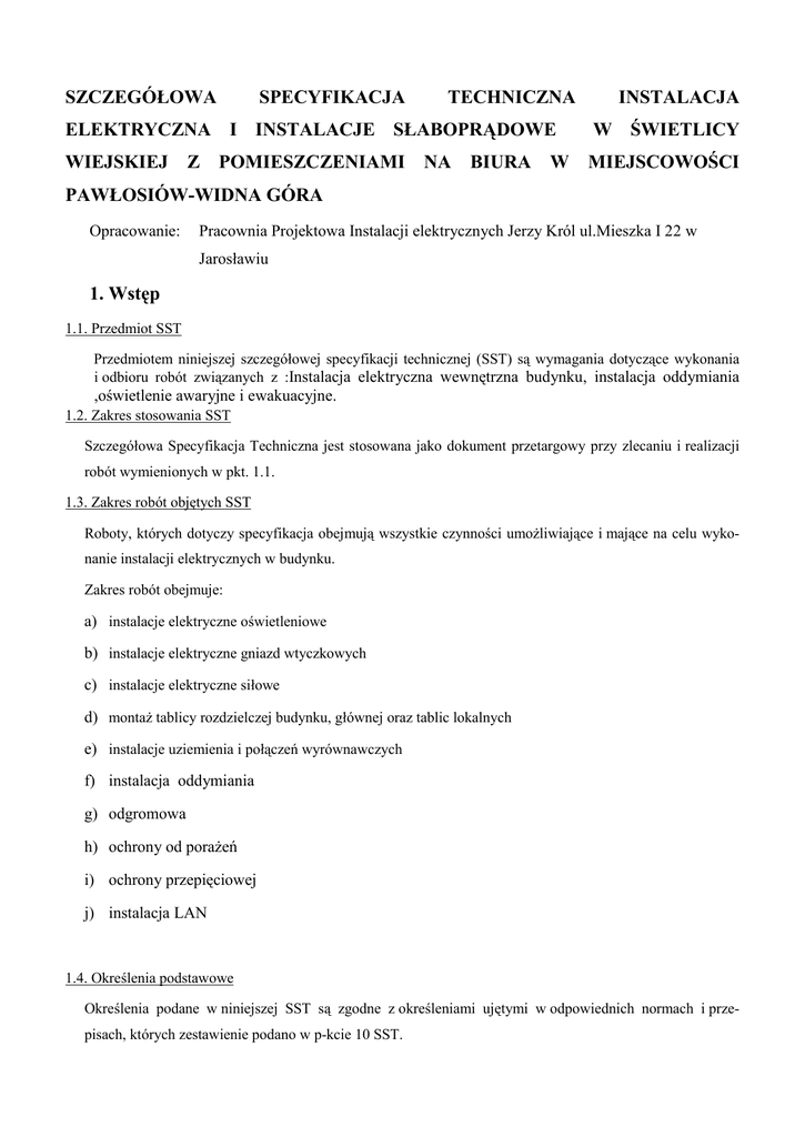 Szczegółowa specyfikacja techniczna instalacja elektryczna i