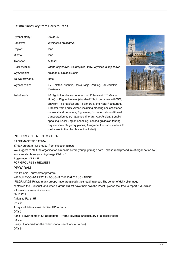 Oferta objazdowa, Pielgrzymka, Inny, Wycieczka objazdowa