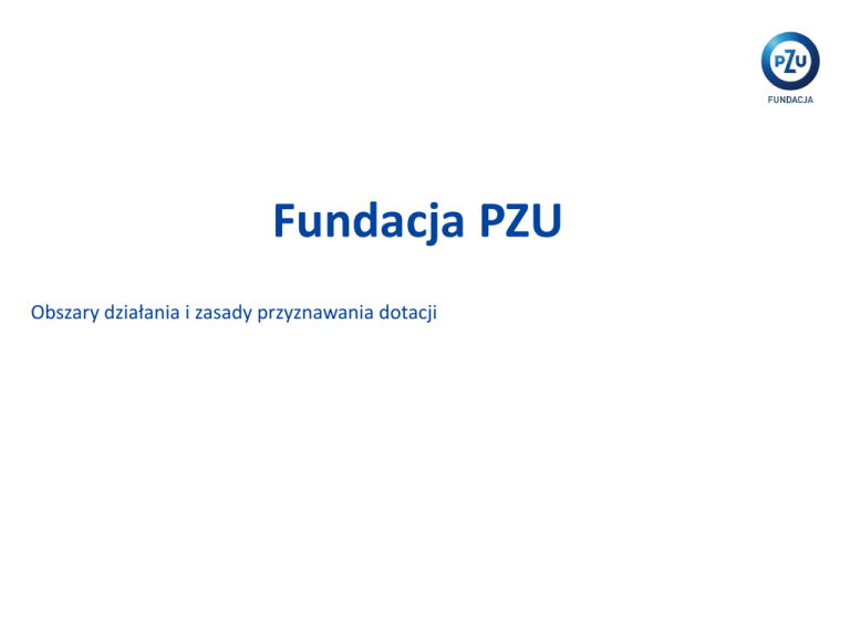 Fundacja PZU Obszary działania i zasady przyznawania dotacji Fundacja PZU realizuje cele spójne ze strategią Grupy PZU. Wspiera przedsięwzięcia w zakresie: pomocy społecznej, w tym osobom w trudnej sytuacji życiowej, • działania na rzecz osób niepełnosprawnych, • ochrony i promocji zdrowia, • działalności wspomagającej rozwój wspólnot i społeczności lokalnych, • podtrzymywania tradycji narodowej i pielęgnowania polskości, • nauki, edukacji i oświaty, • kultury i sztuki oraz ochrony dóbr kultury, • Działania Fundacji PZU w poszczególnych obszarach: Edukacja: • Program Stypendiów Pomostowych, którego administratorem jest Fundacja Edukacyjna Przedsiębiorczości w Łodzi, - - „Świetlica Moje Miejsce” – projekt partnerski z Polską Fundacją Dzieci i Młodzieży, Partnerstwo Strategiczne z Krajowym Funduszem na rzecz Dzieci – wsparcie i rozwój programu wybitnie zdolnym dzieciom i młodzieży, - Projekt partnerski „Przedsiębiorczość” realizowany z Fundacją Młodzieżowej Przedsiębiorczości, a także program edukacyjny dla szkół podstawowych „Od Grosika do Złotówki”, - Projekty realizowane przez Fundację Centrum im. prof. Bronisława Geremka (warsztaty historyczne, stypendia pomostowe dla humanistów), - - Konkurs dotacyjny „Z PZU po lekcjach”. Opieka i pomoc społeczna: • - Dotacje dla osób fizycznych, w tym pracowników PZU, - Konkurs dotacyjny „Młodzi niepełnosprawni – sprawni z PZU”. Ochrona zdrowia: • - „Szkolenie personelu medycznego w zakresie psychoonologii” – projekt realizowany przez Polską Unię Onkologii, - Akcje krwiodawstwa. Kultura i sztuka: Fundacja Pomoc Polakom na Wschodzie – projekt „Szkoła Radiożerców”, - Fundacja Dobroczynności i Wsparcia Rozgłośni Radiowej „Znad Wilii”- projekt „Biblioteka w plecaku”, - Stowarzyszenie Wspólnota Polska – współpraca strategiczna, - Dotacje na cele kulturalne, np. pozyskanie do zbiorów Muzeum Narodowego w Warszawie obrazu Aleksandra Gierymskiego „Żydówka z pomarańczami”, a także kolekcji orderów generała Jana Henryka Dąbrowskiego dla Muzeum Wojska Polskiego, - Konkurs dotacyjny „PZU z Kulturą dla Dzieci i Młodzieży”. - Formy działania Fundacji PZU Dotacje – środki przyznawane organizacjom pozarządowym, które składają wnioski w trybie • pozakonkursowym, a także instytucjom i podmiotom działającym w sferze budżetowej, osobom fizycznym zwracającym się o pomoc (w tym pracownikom Grupy PZU i ich rodzinom). Konkursy dotacyjne – programy własne Fundacji PZU (Z PZU po lekcjach, Młodzi niepełnosprawni • – sprawni z PZU, PZU z Kulturą dla dzieci i młodzieży) skierowane do organizacji pozarządowych z obszarów wiejskich i małych miast poniżej 30 tys. mieszkańców, których działalność jest zgodna z obszarami działalności Fundacji PZU. Przyznawane dotacje pomagają wspierać kreatywność i nagradzać aktywność społeczną osób, które swoją działalnością przyczyniają się do rozwiązywania problemów społeczności lokalnych. Procedura ubiegania się o dotację: Podstawą ubiegania się o dotację jest złożenie prawidłowo wypełnionego formularza wniosku dotacyjnego (dostępny na stronie Fundacji PZU), przesłanego pocztą lub dostarczonego osobiście. W przypadku konkursów dotacyjnych Fundacji PZU wnioski podlegają ocenie formalnej przeprowadzanej przez Biuro Fundacji, a następnie kierowane są do oceny przez niezależnych ekspertów, którzy oceniają je pod względem merytorycznym. Ostateczną decyzję o przyznaniu dotacji podejmuje Zarząd Fundacji PZU. Informacja o przyznanych dotacjach pojawia się na stronie internetowej Fundacji PZU. Kryteria formalne oceny wniosków na konkursy dotacyjne: wniosek złożony w terminie, wniosek zgodny z formularzem, cele projektu zgodne celami konkursu, zagwarantowany własny wkład finansowy (10% wartości wnioskowanej dotacji). Decyzję o przyznaniu dotacji podejmuje Zarząd Fundacji PZU, chyba że wnioskowana kwota przekracza 100 000 złotych – wtedy wniosek dotacyjny kierowany jest do rozpatrzenia przez Radę Fundacji PZU. Ogólne warunki wykorzystania dotacji: Warunkiem wykorzystania dotacji jest podpisanie przez obie strony Umowy dotacji określającej warunki wykorzystania środków przekazanych w ramach dotacji, • Umowa dotacji jest umową wzorcową (taka sama dla wszystkich Grantobiorców), zawierającą zapisy o celu dotacji, sposobie wykorzystania środków, sposobie i trybie rozliczenia środków, czy też zgodzie na poddanie kontroli, • Grantobiorca zobowiązany jest prowadzić dokumentację rachunkową dotyczącą działań realizowanych w ramach projektu, • Merytoryczne oraz finansowe sprawozdanie z realizacji projektu oraz wykorzystania dotacji musi zostać przekazane do Biura Fundacji PZU w ciągu 1 miesiąca od zakończenia realizacji projektu. Prawidłowość i zgodność sprawozdań ze stanem faktycznym podlega kontroli przeprowadzanej przez niezależnego księgowego. • Warunki wykorzystania dotacji przyznanych w ramach konkursów dotacyjnych • dotacja przyznawana jest na określony cel, który precyzuje harmonogram projektu oraz jego budżet, każda zmiana w harmonogramie lub budżecie wymaga wyrażenia zgody przez biuro Fundacji lub zawarcia aneksu do umowy, • zgodnie z umową, dotowany może jednak dokonywać przesunięć pomiędzy pozycjami budżetowymi projektu do 10% wartości dotacji, z wyłączeniem możliwości zwiększania wydatków na wynagrodzenie koordynatora i pozycje dotyczące kosztów administracyjnych, • dotacja wypłacana jest w dwóch ratach – 90% dotacji po podpisaniu umowy dotacji, 10% w terminie 14 dni roboczych od daty zaakceptowania przez Fundację (księgowość) sprawozdania końcowego z realizacji projektu, • termin złożenia sprawozdania końcowego (merytorycznego i finansowego) to 30 dni kalendarzowych od daty zakończenia realizacji projektu. • W jaki sp