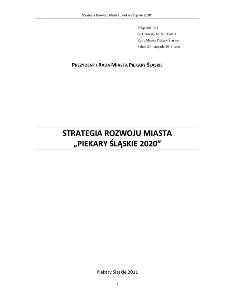STRATEGIA ROZWOJU MIASTA „PIEKARY ŚLĄSKIE 2020”