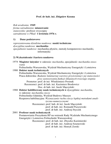prof. dr hab. inż. Z. Kosma, prof. zw.