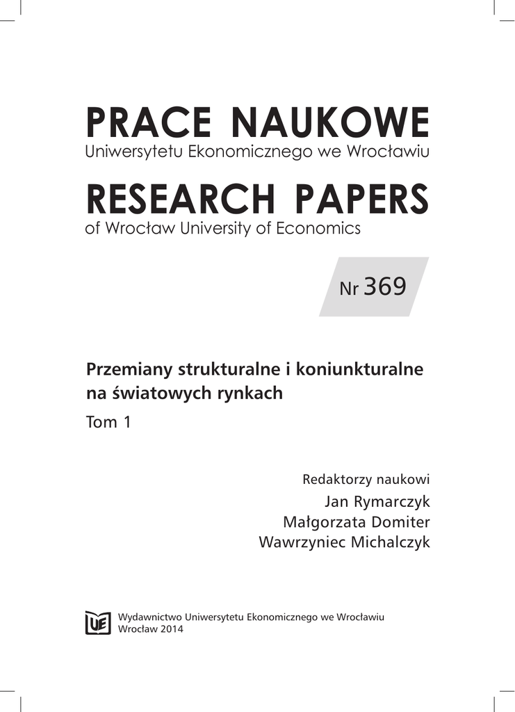 PRACE NAUKOWE Uniwersytetu Ekonomicznego we Wrocławiu RESEARCH PAPERS of Wrocław University of Economics Nr 369 Przemiany strukturalne i koniunkturalne na światowych rynkach Tom 1 Redaktorzy naukowi Jan Rymarczyk Małgorzata Domiter Wawrzyniec Michalczyk Wydawnictwo Uniwersytetu Ekonomicznego we Wrocławiu Wrocław 2014 Redakcja wydawnicza: Elżbieta Kożuchowska, Barbara Majewska Redakcja techniczna i korekta: Barbara Łopusiewicz Łamanie: Małgorzata Czupryńska Projekt okładki: Beata Dębska Publikacja jest dostępna w Internecie na stronach: www.ibuk.pl, www.ebscohost.com, w Dolnośląskiej Bibliotece Cyfrowej www.dbc.wroc.pl, The Central and Eastern European Online Library www.ceeol.com, a także w adnotowanej bibliografii zagadnień ekonomicznych BazEkon http://kangur.uek.krakow.pl/bazy_ae/bazekon/nowy/index.php Informacje o naborze artykułów i zasadach recenzowania znajdują się na stronie internetowej Wydawnictwa www.wydawnictwo.ue.wroc.pl Kopiowanie i powielanie w jakiejkolwiek formie wymaga pisemnej zgody Wydawcy © Copyright by Uniwersytet Ekonomiczny we Wrocławiu Wrocław 2014 ISSN 1899-3192 ISBN 978-83-7695-478-3 (całość) ISBN 978-83-7695-451-6 (tom 1) Wersja pierwotna: publikacja drukowana Druk i oprawa: EXPOL, P. Rybiński, J. Dąbek, sp.j. ul. Brzeska 4, 87-800 Włocławek Spis treści Wstęp................................................................................................................. 9 Franciszek Adamczuk: Identyfikacja modelu klastra oraz etapu jego rozwoju na przykładzie klastra ceramika i turystyka............................................ 11 Łukasz Ambroziak: Ocena pozycji konkurencyjnej nowych państw członkowskich UE w handlu zagranicznym produktami rolno-spożywczymi.... 25 Eric Ambukita: Zagraniczne inwestycje bezpośrednie w Demokratycznej Republice Konga w latach 2009-2012......................................................... 36 Zbigniew Bentyn: Rola e-logistyki w procesie adaptacji struktury łańcucha dostaw do potrzeb klientów......................................................................... 48 Zbigniew Binek: Proces wprowadzenia euro na Łotwie – wnioski dla Polski. 58 Sebastian Bobowski: Implikacje ekonomiczne i polityczne projektu trójstronnego porozumienia o wolnym handlu Chiny – Japonia – Republika Korei............................................................................................................ 67 Elżbieta Bombińska: Pozycja państw azjatyckich w światowym eksporcie usług na początku XXI wieku...................................................................... 78 Jarosław Brach: Europejski – unijny drogowy transport ładunków w procesach internacjonalizacji i globalizacji – przyczyny sukcesu tej gałęzi........ 89 Dominika Brzęczek-Nester: Zmiany struktury geograficznej oraz struktury przedmiotowej obrotów towarowych w polskim handlu zagranicznym w latach 1999-2012...................................................................................... 113 Anna Chrzęściewska: Bezpośrednie inwestycje zagraniczne w Meksyku...... 129 Monika Chutnik, Aleksandra Kuźmińska-Haberla: Polska i Polacy w oczach młodych Europejczyków studiujących na Uniwersytecie Ekonomicznym we Wrocławiu. Stereotypy a decyzje edukacyjne................... 138 Małgorzata Czarnas: Atrakcyjność lokalizacji usług offshoringowych w Polsce na tle wybranych krajów Europy Środkowo-Wschodniej................ 148 Małgorzata Czermińska: Graniczny ruch towarowy w Unii Europejskiej – wybrane aspekty z punktu widzenia procedur celnych............................... 160 Małgorzata Domiter: Jakość instytucjonalna a zjawisko klęski bogactwa..... 174 Jerzy Dudziński: Nowe relacje cen w handlu międzynarodowym a rola Chin w gospodarce światowej.............................................................................. 188 Elżbieta Gołembska, Małgorzata Szczyt: Wpływ logistyki międzynarodowej na przemiany strukturalne i koniunkturalne na rynkach światowych... 198 Eugeniusz Gostomski: Łotwy droga do strefy euro......................................... 209 Monika Grottel: Polska Służba Celna w realizacji innowacyjnego systemu obsługi podmiotów gospodarczych............................................................. 219 6 Spis treści Marcin Haberla: Przesłanki tworzenia klastrów i inicjatyw klastrowych w Polsce oraz cele ich funkcjonowania w świetle wyników badań własnych.............................................................................................................. 230 Agnieszka Hajdukiewicz: Przyczyny wzrostu światowych cen produktów rolno-spożywczych w pierwszej dekadzie XXI wieku................................ 239 Rafał Hryniewiecki: Geopolityczne implikacje zmian na światowych rynkach energetycznych – przypadek Kataru................................................... 251 Anna H. Jankowiak: Lokalizacja w klastrze jako motyw internacjonalizacji przedsiębiorstw............................................................................................ 263 Dorota Agata Jarema: Reforma przedsiębiorstw państwowych w Chińskiej Republice Ludowej...................................................................................... 272 Artur Klimek: Zmiany w polskich przedsiębiorstwach wskutek umiędzynarodowienia................................................................................................... 288 Karolina Łopacińska: Inwestycje bezpośrednie chińskich przedsiębiorstw na rynku europejskim w przekroju branż.................................................... 298 Marek Maciejewski: Specjalizacja i konkurencyjność eksportu państw Unii Europejskiej na rynki zewnętrzne................................................................ 309 Dominika Malchar-Michalska: Polski eksport owoców i przetworów z owoców w latach 2001-2012.................................................................... 320 Joanna Michalczyk: Ewolucja poli