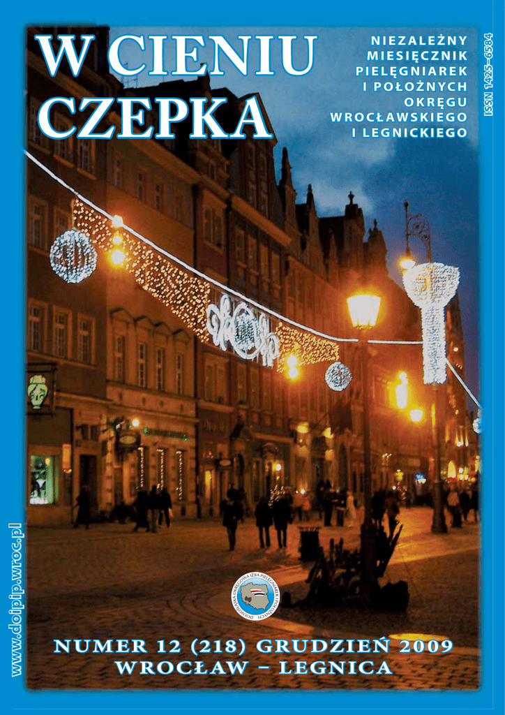 www.doipip.wroc.pl N U M E R 12 ( 2 1 8 ) G RU DZ I E Ń 2 0 0 9 W RO C Ł AW L E G N IC A ISSN 14256584 W CIENIU CZEPKA NIEZALEŻNY MIESIĘCZNIK PIELĘGNIAREK I P O Ł O Ż N YC H OKRĘGU W R O C Ł AWS K I E G O I LEGNICKIEGO W NUMERZE .................................................str. D olnośląska Okręgowa Izba Pielęgniarek i Położnych INFORMACJE we Wrocławiu , INFORMACJE DORPIP .....................................2 HIV – po ekspozycji ......................................4 W CIENIU CZEPK A n ie z a le ż ny m iesięczn i k pielęg n ia rek i po łoż nych ok ręg u w rocławsk iego i le g n ic k ie go. ul. Powstańców Śląskich 50, 53–333 Wrocław, (w w w.doipip.w roc .pl) Wydawca : e–mail: [email protected] Dol noślą sk a Ok ręgowa Izba tel. 364–04–44, 364–04–35, tel/fax. 373–20–56 Pielęg n ia rek i Po łoż nych www.doipip.wroc.pl we Wro cła w iu . Konto Izby Izby:: (NOWE) NFZ i kontrakty POZ .....................................9 Grypa A(H1N1) ............................................10 PREWENCJA Dostęp naczyniowy ....................................11 Redaguje Prez ydium DORPiP: Okręgowa Izba Pielęgniarek i Położnych Urszu la Olechowsk a NOWY NUMER KONTA BANKOWE L eok ad ia Jęd rz ejewsk a GO, na który należy przekazywać skład- A nna Sz a f ra n Dorota Piet rz a k ki członkowskie: Ma r iola Gór ny Bank PEKAO S.A. O/Wrocław 63 1240 6670 1111 0000 5641 0435 Włod ziwoj Saw ick i Władysława G łowacz Gra ż y na Majewsk a-Ka źmiercz a k GODZINY PRACY BIURA Beata Ł abow icz Dolnośląskiej Okręgowej Izby Pielęgniarek i Położnych PTP SEKRETARIAT I KSIĘGOWOŚĆ Informacje i ogłoszenia .............................13 Pielęgniarka roku .......................................13 PIELĘGNIARSTWO Zakażenie HIV.. ..........................................14 poniedziałek – czwartek – od 800 do 1600 z wyjątkiem wtorków i piątków wtorek – od 800 do 1700 a w piątek do 1500 BIURO EWIDENCJI (wydaje, wymienia pra wo wykonywania zawodu) poniedziałek nieczynne dla petentów wtorek ......................................................10–17 środa ...........................................................8–16 czwartek ...................................................10–16 piątek ..........................................................815 KASA Zachowania zdrowotne .............................16 Spełnijmy marzenia ...................................18 poniedziałek .................................. 10–16 wtorek ............................................. 11–14 środa .................................................. 8–15 czwartek .......................................... 10–16 piątek ..................................... NIECZYNNA BIBLIOTEKA Pielęgnowanie w schizofrenii ..................19 wtorki.............................................. od 14 do 17 piątki ................................................. od 9 do 14 PROBLEMY PRAWNE OKRĘGOWY RZECZNIK ODPOWIEDZIALNOŚCI ZAWODOWEJ Informacja w Biurze Izby Szczepienia ochronne ...............................21 POŁOŻNICTWO Zdrowie w naszych rękach .......................23 OGŁOSZENIA Studia pomostowe – inf. z MZ .................24 PAMIĘĆ I SERCE .............................. 25 Redakcja, redakcja techniczna, skład, korekta, grafika i przygotowanie do druku – Włodziwoj Sawicki Konsultacja polonistyczna mgr Katarzyna Sawicka Materiałów nieza mó wio nych re dak cja nie zwra ca, w tek stach pu bli ko wa nych za strzega so bie pra wo skró tów, zmian ty tu łów oraz po pra wek sty li stycz no–ję zy ko wych. Artykuły, listy, uwagi i inną korespondencję prosimy nadsyłać na adres redakcji: Dolnośląska Okręgowa Izba Pielęgniarek i Położnych we Wrocławiu, ul. Powstańców Śląskich 50, 53–333 Wrocław, fax. 373–20–56 e–mail: [email protected] REDAKCJA NIE PONOSI ODPOWIEDZIALNOŚCI ZA TREŚĆ OGŁOSZEŃ I REKLAM I TEKSTÓW SPONSOROWANYCH PRZEWODNICZĄCA OKRĘGOWEGO DOIPiP NIE PROWADZI POŚREDNICTWA SĄDU PIELĘGNIAREK I POŁOŻNYCH PRACY W KRAJU I ZAGRANICĄ UWAGA: Nie przyjmujemy do publikacji Informacja w Biurze Izby tekstów przekazywanych telefonicznie! Nasza okładka: fot. W. Sawicki DYŻURY RADCY PRAWNEGO Wrocławski Rynek poniedziałki 14 – 16; środa 14 – 17 (mgr E. Stasiak); Numer zamknięto 29.11.2009 r. Do druku przygotowano 6.12.2009 r. K A S A P O Ż YC Z K O WA Nakład 3500 egz. PRZY DOIPIP Pismo nieodpłatnie rozprowadzane Bank PKO BP IV Oddział Wrocław, ul. Gepperta 4 Nr: 5 6 1 0 2 0 5 2 4 2 0 0 0 0 2 7 0 2 0 0 1 9 9 2 2 4 wśród członków Samorządu Informacje o stanie swojego konta w Kasie Pożyczkowej Pielęgniarek i Położnych. można uzyskać w czasie dyżuru Druk ABIS w środy od 15 00 do 16 30 telefonicznie lub osobiście Wszystkie artykuły (i nie tylko) KSIĘGOWOŚĆ IZBY NIE PROWADZI KASY POŻYCZKOWEJ na str. www.doipip.wroc.pl I NIE UDZIELA INFORMACJI Drogie Koleżanki i Koledzy ! Mija rok 2009 i nadchodzą upragnione przez nas wszystkich Święta Bożego Narodzenia. Niech Wigilia i Święta Bożego Narodzenia będą dla Was czasem pokoju, zadumy, wspomnień i wzruszeń. Aby nie zabrakło Wam miłości i ciepła rodzinnej atmosfery. Niech świąteczne radości, nadzieja i dobro, miłość do bliźnich zagoszczą w Waszych sercach i domach – również w nadchodzącym Roku. Życzę Wam, aby był to Rok szczęśliwy w osobiste doznania, spełnił zamierzenia zawodowe oraz by przyniósł wiele satysfakcji we wszystkich dziedzinach życia. Przy tej okazji pragnę Państwu serdecznie podziękować za ofiarną pracę na rzecz naszych pacjentów, podopiecznych i potrzebujących Waszego wsparcia, wiedzy i umiejętności, za trud włożony w podnoszenie swoich kwalifikacji zawodowych. Życzę abyście znaleźli siłę, chęci i motywację do wykonywania zawodu pielęgniarki i położnej z pasją i starannością Urszula Olechowska Przewodnicząca DORPiP Od redakcji Przed nami najpiękniej