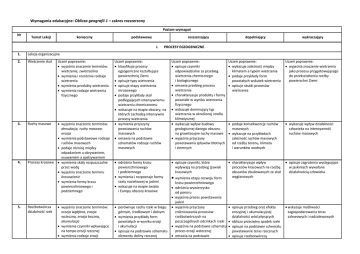 Wymagania edukacyjne: Oblicza geografii 1 – zakres rozszerzony Poziom wymagań Nr Temat Lekcji konieczny podstawowy rozszerzający I. 1. Lekcja organizacyjna 2. Wietrzenie skał 3. Ruchy masowe 4. 5. Uczeń poprawnie: wyjaśnia znaczenie terminów: wietrzenie, zwietrzelina wymienia i rozróżnia rodzaje wietrzenia wymienia produkty wietrzenia wymienia rodzaje wietrzenia fizycznego wyjaśnia znaczenie terminów: denudacja, ruchy masowe, erozja wymienia podstawowe rodzaje ruchów masowych podaje różnicę między odpadaniem a obrywaniem, osuwaniem a spełzywaniem Procesy krasowe wymienia skały rozpuszczalne przez wodę wyjaśnia znaczenie terminu krasowienie wymienia formy krasu powierzchniowego i podziemnego Rzeźbotwórcza działalność rzek wyjaśnia znaczenie terminów: erozja wgłębna, erozja wsteczna, erozja boczna, akumulacja wymienia czynniki wpływające na tempo erozji rzecznej wymienia rodzaje erozji dopełniający wykraczający PROCESY EGZOGENICZNE Uczeń poprawnie: klasyfikuje procesy egzogeniczne kształtujące powierzchnię Ziemi opisuje typy wietrzenia opisuje etapy wietrzenia mrozowego podaje przykłady skał podlegających intensywnemu wietrzeniu chemicznemu wskazuje na mapie obszary, na których zachodzą intensywne procesy wietrzenia wymienia przyczyny powstawania ruchów masowych omawia na podstawie schematów rodzaje ruchów masowych Uczeń poprawnie: opisuje czynniki odpowiedzialne za przebieg wietrzenia chemicznego i biologicznego omawia przebieg procesu wietrzenia charakteryzuje produkty i formy powstałe w wyniku wietrzenia fizycznego wskazuje dominujący typ wietrzenia w określonej strefie klimatycznej wykazuje wpływ budowy geologicznej danego obszaru na grawitacyjne ruchy masowe wyjaśnia przyczyny powstawania spływów błotnych i ziemnych Uczeń poprawnie: wykazuje zależność między klimatem a typem wietrzenia podaje przykłady form powstałych wskutek wietrzenia opisuje skutki procesów wietrzenia Uczeń poprawnie: wyjaśnia znaczenie wietrzenia jako procesu przygotowującego do przekształcenia rzeźby powierzchni Ziemi podaje konsekwencje ruchów masowych wykazuje na przykładach zależność ruchów masowych od rzeźby terenu, klimatu i warunków wodnych wykazuje wpływ działalności człowieka na intensywność ruchów masowych odróżnia formy krasu powierzchniowego i podziemnego wymienia i rozpoznaje formy szaty naciekowej w jaskini wskazuje na mapie świata i Europy obszary krasowe opisuje czynniki, które wpływają na przebieg zjawisk krasowych opisuje zagrożenia występujące w jaskiniach wywołane działalnością człowieka wymienia etapy rozwoju form charakteryzuje wpływ procesów krasowych na rzeźbę obszarów zbudowanych ze skał węglanowych krasu powierzchniowego odróżnia wywierzysko od ponoru wyjaśnia proces powstawania jaskiń wyjaśnia przyczyny zróżnicowania procesów rzeźbotwórczych na poszczególnych odcinkach rzeki wyjaśnia na podstawie schematu proces erozji wstecznej omawia na podstawie opisuje przebieg oraz efekty erozyjnej i akumulacyjnej działalności wód płynących oblicza przeciętny spadek rzeki opisuje na podstawie schematu powstawanie teras rzecznych opisuje rzeźbotwórczą wskazuje możliwości zagospodarowania teras zalewowych i nadzalewowych porównuje cechy rzeki w biegu górnym, środkowym i dolnym wymienia przykłady form powstałych w wyniku erozji i akumulacji opisuje na podstawie schematu elementy doliny rzecznej rzecznej odróżnia terasę zalewową wymienia elementy doliny od nadzalewowej rzecznej wymienia rodzaje ujść podaje przykłady rzek o różnych rzecznych i wskazuje ich typach ujść przykłady na mapie 6. Rzeźbotwórcza działalność lodowców górskich 7. Rzeźbotwórcza działalność lądolodów i wód polodowcowych 8. Rzeźbotwórcza działalność wiatru wymienia podstawowe formy powstałe w wyniku działalności lodowca górskiego wyjaśnia znaczenie terminów: egzaracja, muton, dolina U-kształtna, cyrk lodowcowy, detrakcja, detersja, dolina zawieszona, wygłady lodowcowe, kem, oz, drumlin wymienia rodzaje moren podaje przykłady lodowców górskich na świecie wymienia podstawowe formy powstałe w wyniku działalności lądolodu wskazuje na mapie przykładowe obszary o rzeźbie młodoglacjalnej 9. Rzeźbotwórcza działalność morza 10. Typy wybrzeży morskich wyróżnia rodzaje rzeźbotwórczej działalności lodowców dokonuje podziału form rzeźby polodowcowej na formy erozyjne i akumulacyjne rozróżnia formy powstałe w wyniku działalności lodowców górskich wyjaśnia powstawanie różnych typów moren schematów fazy rozwoju meandrów i starorzeczy wyjaśnia proces powstawania delty wyjaśnia, w jakich warunkach zachodzi erozja wąwozowa opisuje przebieg niszczącej działalności lodowca górskiego działalność wód opadowych (erozja wąwozowa) opisuje skutki działalności lodowców górskich opisuje przebieg erozyjnej i akumulacyjnej działalności lodowców i wymienia formy powstałe w jej wyniku opisuje skutki działalności lądolodów odróżnia skutki działalności lądolodów od skutków działalności lodowców górskich omawia wpływ zlodowaceń na rzeźbę powierzchni Ziemi opisuje przebieg oraz efekty erozji i akumulacji eolicznej wymienia zagrożenia dla działalności człowieka spowodowane deflacją oraz niszczeniem skał przez piasek niesiony wiatrem wyjaśnia związek między lessami występującymi w Europie a plejstoceńskimi lądolodami opisuje przebieg oraz efekty niszczącej i budującej działalności morza porównuje rzeźbotwórczą działalność morza na wybrzeżu wysokim i płaskim charakteryzuje wybrzeża powstałe przy udziale organizmów żywych podaje przykłady skutków oddziaływania wody morskiej w strefie wybrzeża opisuje na podstawie schematu powstawanie doliny U-kształtnej rozróżnia formy powstałe w odróżnia rzeźbę staroglacjalną wyniku działalności lądolodów od młodoglacjalnej wymienia formy fluwiogl