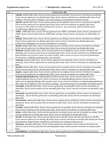 Zagadnienia negatywne l.p. 1. - 2. - 3. - 4. - 5. - 6. - 7. - 8. - 9. - 10. - 11. - 12. - 13. - 14. - 15. - 16. - 17. - 18. - —— 7. Dolegliwości, zaburzenia 2013-09-30 Nastawienie do: acholii, acholii jako kary, bycia zawsze gotowym na acholię, bycia zawsze otwartym na acholię, bycia zawsze gotowym na acholię jako karę, bycia zawsze otwartym na acholię jako karę (brak odpływu żółci do jelita cienkiego, spowodowanego przeszkodami mechanicznymi) agrafii, agrafii jako kary, bycia zawsze gotowym na agrafię, bycia zawsze otwartym na agrafię, bycia zawsze gotowym na agrafię jako karę, bycia zawsze otwartym na agrafię jako karę (częściowa lub całkowita utrata umiejętności pisania, spowodowana mikrouszkodzeniami ośrodkowego układu nerwowego) AIDS, AIDS jako kary, bycia zawsze gotowym na AIDS z porodem, bycia zawsze otwartym na AIDS, bycia zawsze gotowym na AIDS jako na karę, bycia zawsze otwartym na AIDS jako na karę aleksji, aleksji jako kary, bycia zawsze gotowym na aleksję, bycia zawsze otwartym na aleksję, bycia zawsze gotowym na aleksję jako karę, bycia zawsze otwartym na aleksję jako karę (zaburzenie polegające na utracie umiejętności czytania) alergii, alergii jako kary, bycia zawsze gotowym na alergię, bycia zawsze otwartym na alergię, bycia zawsze gotowym na alergię jako karę, bycia zawsze otwartym na alergię jako karę alodynii, alodynii jako kary, bycia zawsze gotowym na alodynię, bycia zawsze otwartym na alodynię, bycia zawsze gotowym na alodynię jako karę, bycia zawsze otwartym na alodynię jako karę (drobna naczyniowa wada rozwojowa jelita, która często jest przyczyną niewyjaśnionego krwawienia w układzie pokarmowym oraz anemii) amnezji, amnezji jako kary, bycia zawsze gotowym na amnezję, bycia zawsze otwartym na amnezję, bycia zawsze gotowym na amnezję jako karę, bycia zawsze otwartym na amnezję jako karę anemii, anemii jako kary, bycia zawsze gotowym na anemię, bycia zawsze otwartym na anemię, bycia zawsze gotowym na anemię jako karę, bycia zawsze otwartym na anemię jako karę anginy, anginy jako kary, bycia zawsze gotowym na anginę, bycia zawsze otwartym na anginę, bycia zawsze gotowym na anginę jako karę, bycia zawsze otwartym na anginę jako karę angiodysplazji jelitowej, angiodysplazji jelitowej jako kary, bycia zawsze gotowym na angiodysplazję jelitową, bycia zawsze otwartym na angiodysplazję jelitową, bycia zawsze gotowym na angiodysplazję jelitową jako karę, bycia zawsze otwartym na angiodysplazjęjelitową jako karę (brak odpływu żółci do jelita cienkiego, spowodowanego przeszkodami mechanicznymi) anomalii, anomalii jako kary, bycia zawsze gotowym na anomalie, bycia zawsze otwartym na anomalie, bycia zawsze gotowym na anomalię jako karę, bycia zawsze otwartym na anomalie, jako karę anoreksji, anoreksji jako kary, bycia zawsze gotowym na anoreksję, bycia zawsze otwartym na anoreksję, , bycia zawsze gotowym na anoreksję jako karę bycia zawsze otwartym na anoreksję jako karę artretyzmu, artretyzmu jako kary, bycia zawsze gotowym na artretyzm, bycia zawsze otwartym na artretyzm, bycia zawsze gotowym na artretyzm jako karę, bycia zawsze otwartym na artretyzm jako karę arytmii, arytmii jako kary, bycia zawsze gotowym na arytmię, bycia zawsze otwartym na arytmię, bycia zawsze gotowym na arytmię jako karę, bycia zawsze otwartym na arytmię jako karę astmy, astmy jako kary, bycia zawsze gotowym na astmę, bycia zawsze otwartym na astmę, bycia zawsze gotowym na astmę jako karę, bycia zawsze otwartym na astmę jako karę atrofii, atrofii jako kary, bycia zawsze gotowym na atrofię, bycia zawsze otwartym na atrofię, , bycia zawsze gotowym na atrofię jako karę bycia zawsze otwartym na atrofię jako karę(zanik tkanki spowodowany długotrwałym niedoborem pożywienia lub substancji odżywczych) autyzmu, autyzmu jako kary, bycia zawsze gotowym na autyzm, bycia zawsze otwartym na autyzm, bycia zawsze gotowym na anoreksję jako karę, bycia zawsze otwartym na autyzm jako karę awitaminozy, awitaminozy jako kary, bycia zawsze gotowym na awitaminozę, bycia zawsze Marian Bartkowiak Nastawienia 1 Zagadnienia negatywne 19. - 20. - 21. - 22. - 23. - 24. - 25. - 26. - 27. - 28. - 29. - 30. - 31. - 32. - 33. - 34. - —— 7. Dolegliwości, zaburzenia 2013-09-30 otwartym na awitaminozę, bycia zawsze gotowym na awitaminozę jako karę, bycia zawsze otwartym na awitaminozę jako karę bakterii chorobotwórczych, bakterii chorobotwórczych jako kary, bycia zawsze gotowym na bakterie chorobotwórcze, bycia zawsze otwartym na bakterie chorobotwórcze, bycia zawsze gotowym na bakterie chorobotwórcze jako karę, bycia zawsze otwartym na bakterie chorobotwórcze jako karę bezdechu, bezdechu jako kary, bycia zawsze gotowym na bezdech, bycia zawsze otwartym na bezdech, bycia zawsze gotowym na bezdech jako karę, bycia zawsze otwartym na bezdech jako karę bezsenności, bezsenności jako kary, bycia zawsze gotowym na bezsenność, bycia zawsze otwartym na bezsenność, bycia zawsze gotowym na bezsenność jako karę, bycia zawsze otwartym na bezsenność jako karę biegunki, biegunki jako kary, bycia zawsze gotowym na biegunkę, bycia zawsze otwartym na biegunkę, bycia zawsze gotowym biegunkę jako karę, bycia zawsze otwartym na biegunkę jako karę bielactwa, bielactwa jako kary, bycia zawsze gotowym na bielactwo, bycia zawsze otwartym na bielactwo, bycia zawsze gotowym na bielactwo jako karę, bycia zawsze otwartym na bielactwo jako karę błędów lekarskich, błędów lekarskich jako kary, bycia zawsze gotowym na błędy lekarskie, bycia zawsze otwartym na błędy lekarskie, bycia zawsze gotowym błędy lekarskie jako karę, bycia zawsze otwartym na błędy lekarskie jako karę bólu, bólu jako kary, bycia zawsze gotowym na ból, bycia zawsze otwartym na ból, bycia zawsze gotowym na ból jako karę, bycia zawsze otwartym na ból jako karę bulimii, bulimii jako kary, bycia zawsze gotowym na bu