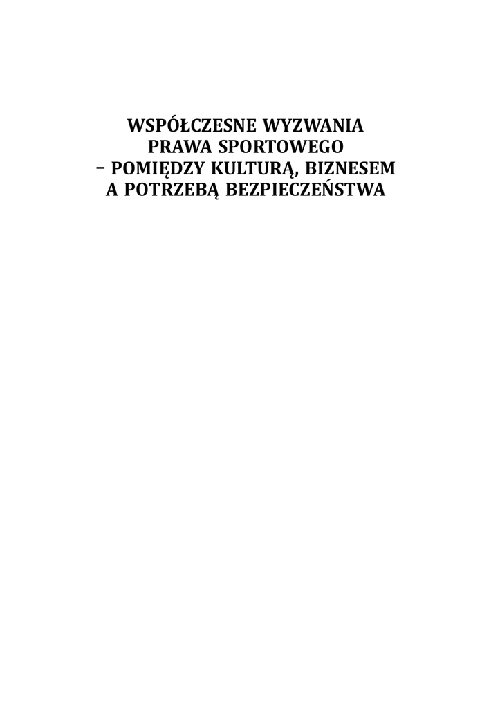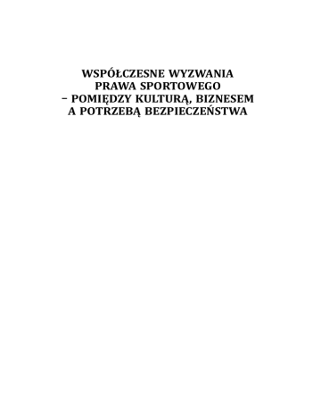 WSPÓŁCZESNE WYZWANIA PRAWA SPORTOWEGO POMIĘDZY KULTURĄ, BIZNESEM A POTRZEBĄ BEZPIECZEŃSTWA WSPÓŁCZESNE WYZWANIA PRAWA SPORTOWEGO POMIĘDZY KULTURĄ, BIZNESEM A POTRZEBĄ BEZPIECZEŃSTWA Redakcja Krzysztof Wróbel Warszawa 2015 Redakcja: Krzysztof Wróbel Wydawca: Wydział Prawa i Administracji Uniwersytetu Warszawskiego, Koło Naukowe „Ius et Sport” Copyright ©: Autorzy, Warszawa 2015 Korekta: Jakub Adamski Szymon Jałkowski Bartłomiej Kłosiński Jolanta Korba Adrian Lakowski Adrian Pokrywczyński Natalia Świątko Mateusz Walczak Piotr Wenski Krzysztof Wróbel ISBN 978-83-63397-09-8 Wydano dzięki wsparciu inansowemu: Fundacji Uniwersytetu Warszawskiego oraz Rady Kół Naukowych Wydziału Prawa i Administracji Uniwersytetu Warszawskiego Druk, skład, łamanie oraz projekt okładki: Spis treści Słowo wstępne . . . . . . . . . . . . . . . . . . . . . . . . . . . . . . . . . . . . . . . . . . . . . . 7 CZĘŚĆ I Mateusz Dróżdż Współzawodnictwo sportowe dzieci i młodzieży – problemy praktyczne, związane z organizacją imprez masowych . . . . . . . . . . . . . . . . . . . . . . . . 9 Jakub Laskowski Działalność pośredników przy transakcjach na rynku piłkarskim w świetle regulacji federacji piłkarskich. Teraźniejszość i przyszłość . . . . . . . . . . . . . 23 Karolina Tetłak Immunitet podatkowy Międzynarodowego Komitetu Olimpijskiego . . . . . . . 37 Andrzej Wach Spór co do modelu rozwiązywania sporów sportowych . . . . . . . . . . . . . . . 47 Krzysztof Andrzej Wąsowski Administracyjnoprawne aspekty zakazu klubowego. . . . . . . . . . . . . . . . . . 61 CZĘŚĆ II Jakub Adamski Gmina jako właściciel klubu sportowego a zasady gospodarki komunalnej. . . 73 Grzegorz Knap Charakter prawny odpowiedzialności dyscyplinarnej w sporcie . . . . . . . . . . 83 Anna Kornecka Pojęcie organizatora na gruncie ustawy o bezpieczeństwie imprez masowych 93 Katarzyna Martowłos Ograniczenia reklamy podczas imprez sportowych w prawie polskim . . . . . 103 Mateusz Walczak Unijne regulacje dotyczące pomocy publicznej – zagrożenie czy szansa dla piłkarskiej Europy? . . . . . . . . . . . . . . . . . . . . . . . . . . . . . . . . . . . . . . . 111 Agnieszka Wąglorz Finansowanie klubów sportowych przez gminy . . . . . . . . . . . . . . . . . . . . 125 6 Spis treści Krzysztof Wróbel Synergia prawa sportowego – rozważania na tle nowelizacji ustawy o sporcie . 137 Agata Zaczek Widowisko sportowe jako przedmiot prawa autorskiego . . . . . . . . . . . . . . 151 Słowo wstępne Współczesne wyzwania prawa sportowego – pomiędzy kulturą, biznesem a potrzebą bezpieczeństwa to publikacja podsumowująca, zorganizowaną przez Koło Naukowe „Ius et Sport” I Ogólnopolską Konferencję Naukową, która odbyła się w dniach 20–21 marca 2014 r. na Uniwersytecie Warszawskim. Publikacja stanowi odpowiedź na potrzebę naukowego określenia wyzwań stojących obecnie przed dyscypliną prawa sportowego. Autorzy dostrzegając konieczność znalezienia właściwych rozwiązań legislacyjnych odpowiadających na te wyzwania, podejmują tematy związane między innymi z organizacją i bezpieczeństwem imprez masowych, marketingiem sportowym, wykorzystaniem wizerunku sportowców, opodatkowaniem osiągnięć sportowych oraz rynkiem transferowym. Monogra ia złożona jest z dwóch części. Pierwsza stanowi zbiór artykułów eksperckich, autorami których są wybitni przedstawiciele doktryny z zakresu prawa sportowego oraz prawnicy zajmujący się zawodowo prawnymi kwestiami profesjonalnego sportu. Druga część to zbiór wybranych prac studentów i doktorantów. Przedstawiam Państwu dorobek pracy całego Koła Naukowego „Ius et Sport”, którego zwieńczeniem jest pierwsza w historii Uniwersytetu Warszawskiego publikacja pokonferencyjna, w całości poświęcona prawu sportowemu. Powyższy zbiór artykułów stanowi niewątpliwie powiększenie dorobku naukowego Uniwersytetu Warszawskiego, a zarazem samych studentów i pracowników naukowych. Krzysztof Wróbel Prezes Koła Naukowego „Ius et Sport” Wydział Prawa i Administracji Uniwersytet Warszawski Mateusz Dróżdż* Współzawodnictwo sportowe dzieci i młodzieży – problemy praktyczne, związane z organizacją imprez masowych 1. Wstęp Obowiązywanie ustawy o bezpieczeństwie imprez masowych1 powoduje co raz więcej kontrowersji2. Charakter sankcjonujących norm tam zawartych powoduje, że u.b.i.m. przez większość osób jest utożsamiana z aktem prawnym, zawierającym wyłącznie regulacje dotyczące sankcjonowania czynów zabronionych popełnianych przez kibiców podczas meczów piłki nożnej. Jednak jej zakres przedmiotowy jest znacznie obszerniejszy, ponieważ określa ona między innymi: zasady postępowania konieczne do zapewnienia bezpieczeństwa imprez masowych, warunki bezpieczeństwa tych wydarzeń, tryb oraz zasady wydawania zezwoleń na ich przeprowadzanie, reguły gromadzenia i przetwarzania informacji dotyczących bezpieczeństwa imprez masowych, a także zasady odpowiedzialności organizatorów za szkody wyrządzone w związku z ich zorganizowaniem. Przede wszystkim ustawa o bezpieczeństwie imprez masowych reguluje nie tylko przebieg meczów piłki nożnej, ale także innych imprez sportowych, a jej treść obejmuje również takie wydarzenia, które w potocznym znaczeniu nie mają nic wspólnego ze sportem3. Prace nad ustawą dotyczyły przede wszystkim usankcjonowania negatywnych zdarzeń, jakie miały miejsce na 1 Ustawa z dnia 20 marca 2009 r. o bezpieczeństwie imprez masowych (Dz. U. nr 62, poz. 504 ze zm.); dalej jako: „u.b.i.m.” lub „ustawa o bezpieczeństwie imprez masowych”. 2 Zob. np. M. Dróżdż, Uchwalenie ustawy o bezpieczeństwie imprez masowych – przykład aktu państwa w prawa czy państwa w prawie, Ius Novum 2014, numer specjalny, s. 158 i n.; H. E. Zadroźniak, Imprezy masowe – wybrane dylematy oraz uwagi de lege ferenda, Samorząd Terytorialny 2008