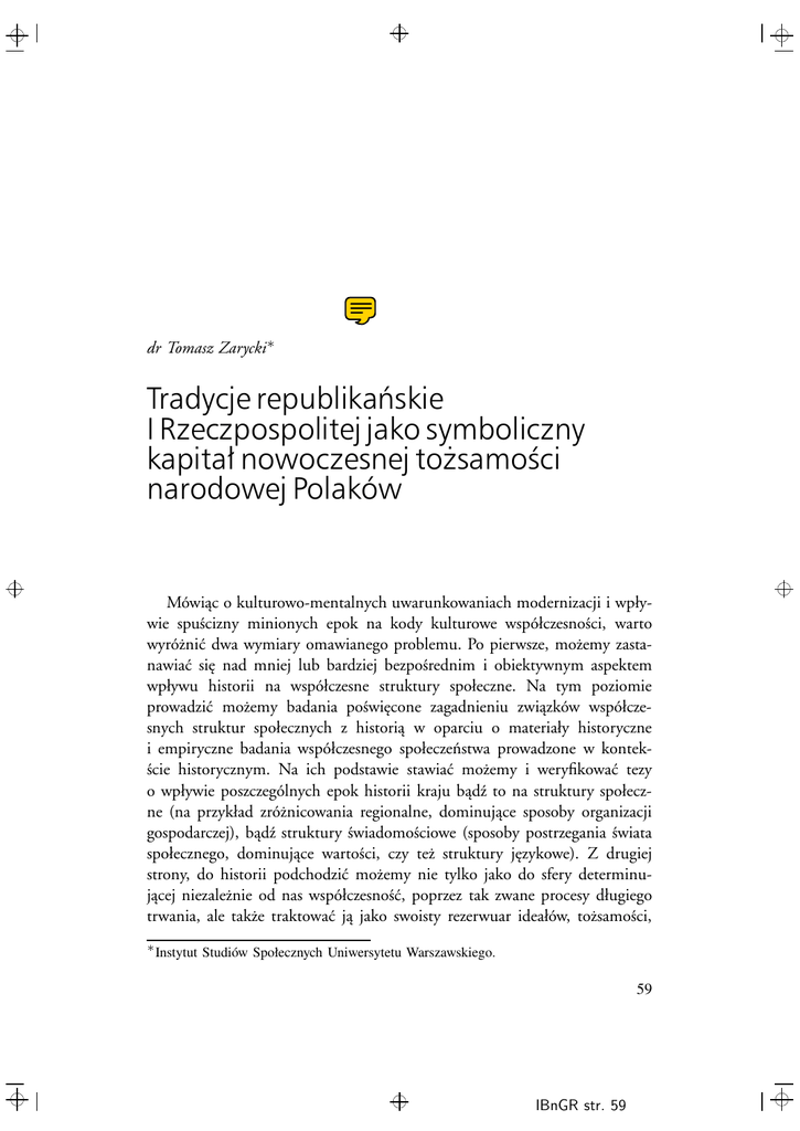Tradycje republikańskie I Rzeczpospolitej jako symboliczny kapitał