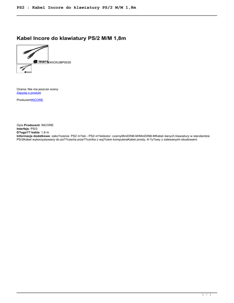 PS2 : Kabel Incore do klawiatury PS/2 M/M 1,8m