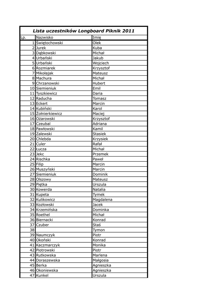 Lista uczestników Longboard Piknik 2011