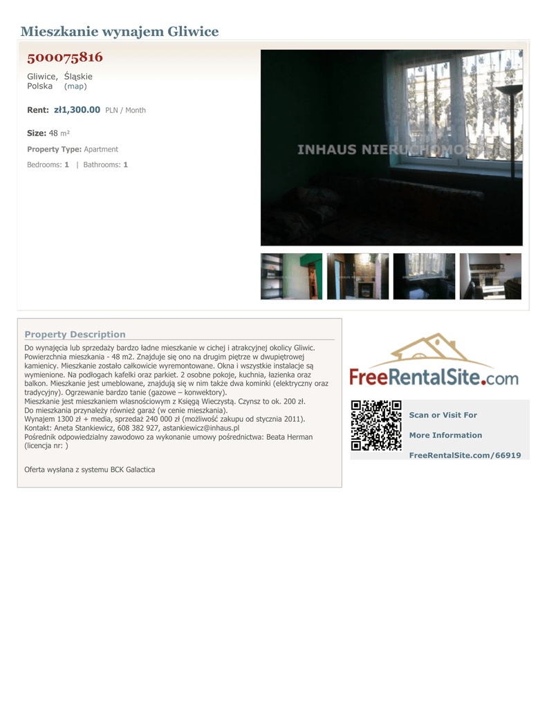 Gliwice, - FreeRentalSite (Listing #: 66919)
