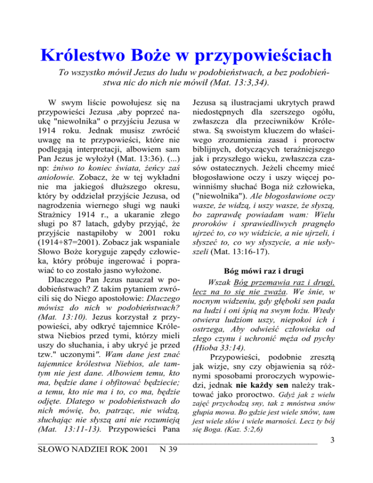 ukę "niewolnika" o przyjściu Jezusa w zwłaszcza dla przeciwników Króle1914 roku. Jednak musisz zwrócić stwa. Są swoistym kluczem do właściuwagę na te przypowieści, które nie wego zrozumienia zasad i proroctw