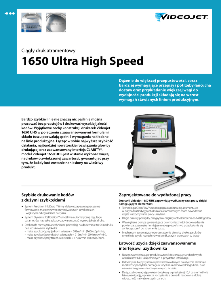 Videojet 1650UHS — ulotka