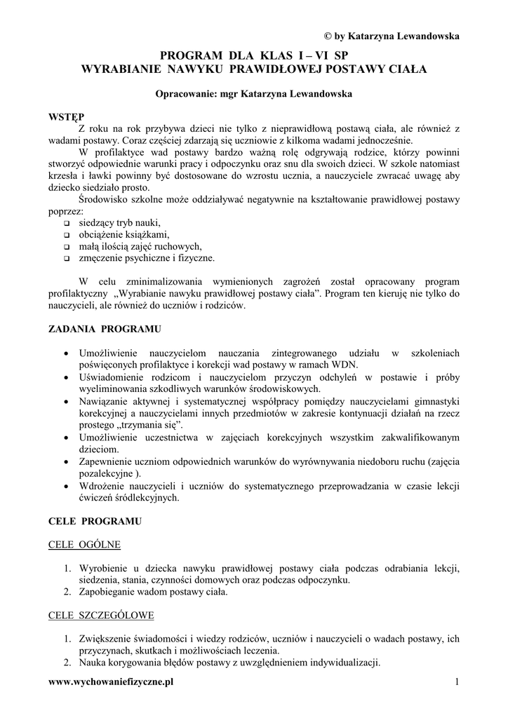program dla klas i – vi sp wyrabianie nawyku prawidłowej postawy