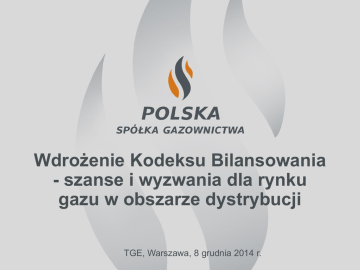 Wdrożenie Kodeksu Bilansowania - szanse i wyzwania dla rynku gazu w obszarze dystrybucji TGE, Warszawa, 8 grudnia 2014 r. Podstawowe informacje • Rozporządzenie Komisji (UE) nr 312/2014 z dnia 26 marca 2014 r. ustanawiające kodeks sieci dotyczący bilansowania gazu w sieciach przesyłowych. • Kodeks bilansowania stanowi integralną część Rozporządzenia Parlamentu Europejskiego i Rady (WE) nr 715/2009 w sprawie warunków dostępu do sieci przesyłowych, co oznacza że: Kodeks bilansowania obowiązuje bezpośrednio. • Wejście w życie Kodeksu bilansowania: 1 października 2015 r. Główne cele wdrożenia kodeksu bilansowania • Wsparcie rozwoju konkurencyjnego hurtowego rynku gazu dla transakcji krótkoterminowych w Unii Europejskiej. • Transakcje krótkoterminowe na hurtowym rynku gazu - główne narzędzie umożlwiające użytkownikom bilansowanie swoich dostaw i poborów. • Informacje przekazywane przez OSP (m.in. przy współpracy z OSD) - pomoc użytkownikom sieci w zarządzaniu ryzkiem niezbilansowania. 3 Warianty informacyjne model informacyjny wariant podstawowy wariant 1 wariant 2 • całość wolumenu wprowadzonego • całość wolumenu wprowadzonego • nie ma reguły o alokowaniu całości do systemu OSD jest alokowana do systemu OSD jest alokowana wolumenu wprowadzonego do • alokacja wstępna przekazywana • alokacja wstępna jest alokacją systemu OSD w dobie następnej ostateczną • prognoza dla poborów mierzonych • alokacja ostateczna - w terminach • dodatkowe informacje o ilościach rzadziej niż codziennie jest według regulacji krajowych zmierzonych śróddziennie oraz alokacją ostateczną • dodatkowe informacje o ilościach o śróddziennych poborach • dodatkowe informacje o ilościach zmierzonych śróddziennie oraz mierzonych codziennie i rzadziej zmierzonych śróddziennie oraz prognozach dla poborów niż codziennie prognozach dla poborów mierzonych rzadziej niż codziennie mierzonych rzadziej niż codziennie 4 Pobory gazu mierzone śróddziennie • dotyczy: prawdopodobnie punkty wyjścia o mocy umownej co najmniej 4580 kWh/h (417 m3/h) • WP, W1, W2: • co najmniej dwie aktualizacje w ciągu doby; • aktualizacje dostarczane bez zbędnej zwłoki, ale nie dłużej niż 4 godziny od przepływu gazu; • pierwsza aktualizacja powinna być dostarczana nie później niż o godz. 17.00 czasu zimowego lub 16.00 czasu letniego; 5 Pobory gazu mierzone codziennie • dotyczy: punkty WR o mocy umownej poniżej mocy granicznej dla poborów śróddziennych • WP, W2: • brak dodatkowych wymogów informacyjnych • W1: • co najmniej dwie aktualizacje w ciągu doby; • aktualizacje dostarczane nie później niż 2 godziny od przepływu gazu; • prawdopodobnie aktualizacje wyznaczane przez podmiot odpowiedzialny za prognozowanie; 6 Pobory gazu mierzone rzadziej niż codziennie • dotyczy: punkty WS oraz różnica bilansowa OSD • WP: • prognoza dla doby następnej dostarczana nie później niż o godz. 12.00 czasu zimowego lub 11.00 czasu letniego; • co najmniej dwie aktualizacje w dobie bieżącej, przy czym pierwsza nie później niż o godz. 13.00 (zima) lub 12.00 (lato); • W1: • dwie aktualizacje w dobie bieżącej w terminach jak dla wariantu 1 dla poborów z pomiarem codziennym; • W2: • prognoza dla doby następnej w terminach jak dla WP • wykonuje: podmiot odpowiedzialny za prognozowanie 7 Podmiot odpowiedzialny za prognozowanie • Prezes URE wyznacza podmiot odpowiedzialny za prognozowanie odbieranych ilości paliwa gazowego, które są mierzone rzadziej niż codziennie. • Podmiotem takim może być: • Operator Systemu Przesyłowego, • Operator Systemu Dystrybucyjnego, • osoba trzecia (IGG, TGE, ..... ?) 8 Obowiązki podmiotu prognozującego • Prognozy w oparciu o model statystyczny zapotrzebowania na gaz ziemny (profil zużycia) uwzględniający zmiany zapotrzebowania na gaz w relacji do zmiennych takich jak temperatura, dzień tygodnia, typ odbiorcy i okresy świąteczne. • Prognozy przekazywane do OSP nie później niż na jedną godzinę przed terminem publikacji ich przez OSP. • W przypadku zastosowania W1 zasady dla podmiotu prognozującego stosuje się odpowiednio. • Co najmniej raz na 2 lata publikacja sprawozdania w sprawie dokładności prognoz. 9 Model statystyczny dla poborów bez dobowej rejestracji stosowany przez PSG opis matematyczny: Eid [kWh/d] = Si [kWh/d] + Zi [kWh/d/C] Td [C] [szczegóły w: ST-IGG-2701:2014 oraz IRiESD] 10 Mechanizm zachęcający do przedstawiania precyzyjnej prognozy • URE może wezwać OSP, OSD i podmiot prognozujący do zaproponowania mechanizmu zachęcającego do przedstawiania precyzyjnej prognozy. • Mechanizm ten powinien spełniać następujące kryteria: • opierać się na wynikach działania danego podmiotu i przyjmować formę płatności (z górnym pułapem), które otrzyma w przypadku wyników lepszych od założonych, lub opłat, które poniesie w przypadku wyników gorszych od założonych, • uwzględniać możliwości danego podmiotu, • prawidłowo odzwierciedlać podział obowiązków pomiędzy zaangażowanymi stronami, • być dostosowany do stanu rozwoju rynku gazu. 11 Decyzje Prezesa URE na przełomie 2014/15 • Wybór wariantu informacyjnego • Wskazanie podmiotu odpowiedzialnego za prognozowanie • Ewentualne wdrożenie mechanizmów zachęcających do przedstawiania precyzyjnej prognozy dotyczącej mierzonych rzadziej niż codziennie ilości 12 Zapraszam do dyskusji dr inż. Paweł Słomiński [email protected]